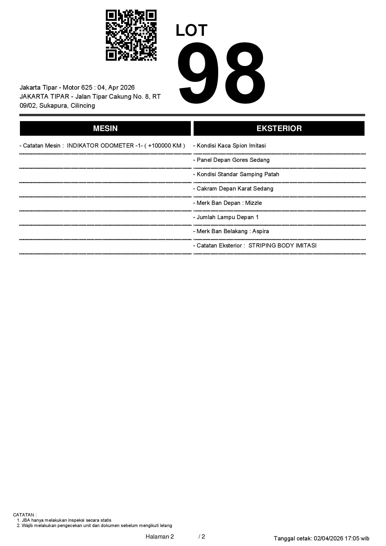 2. Peserta lelang wajib cek unit & dokumen