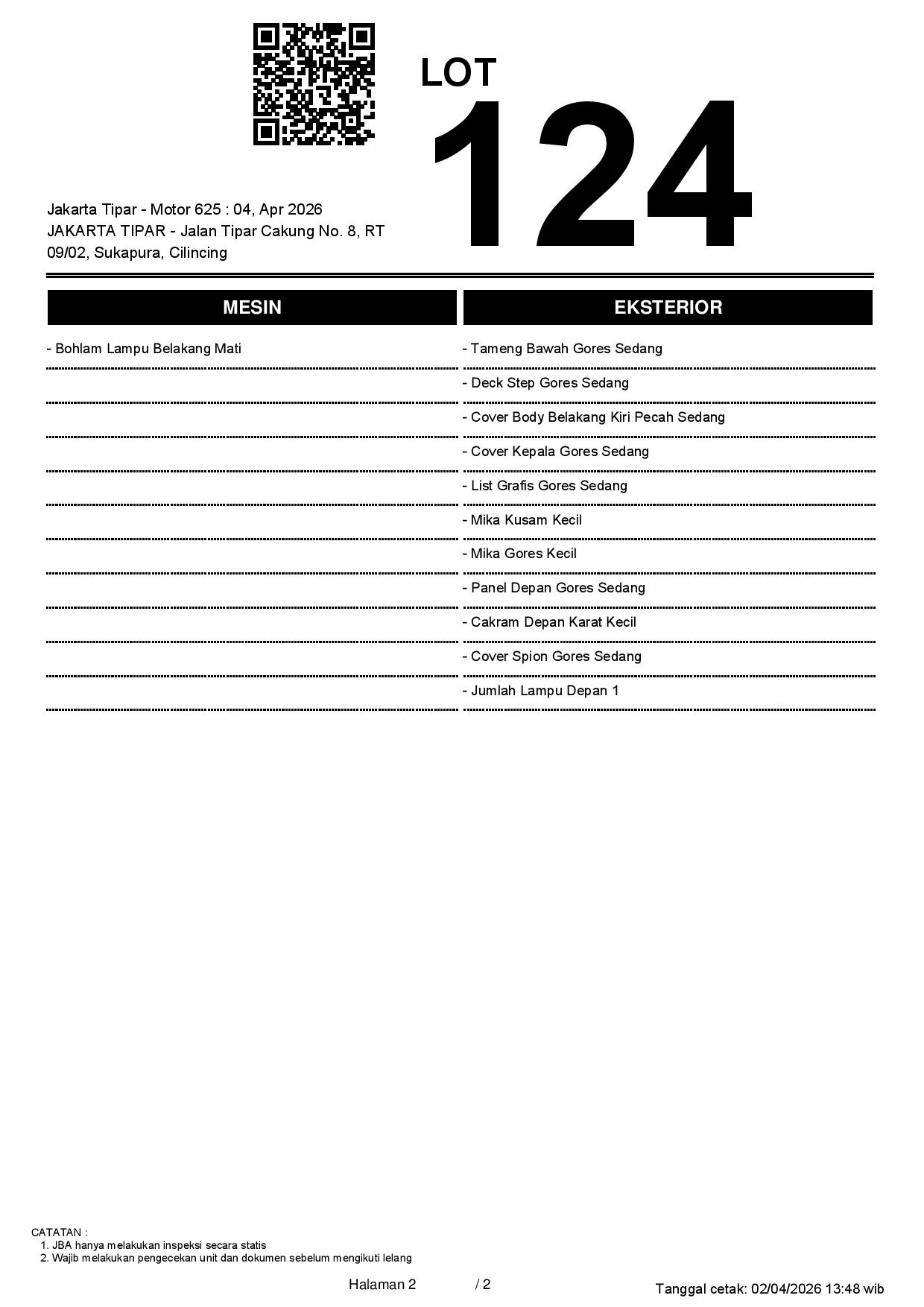 2. Peserta lelang wajib cek unit & dokumen