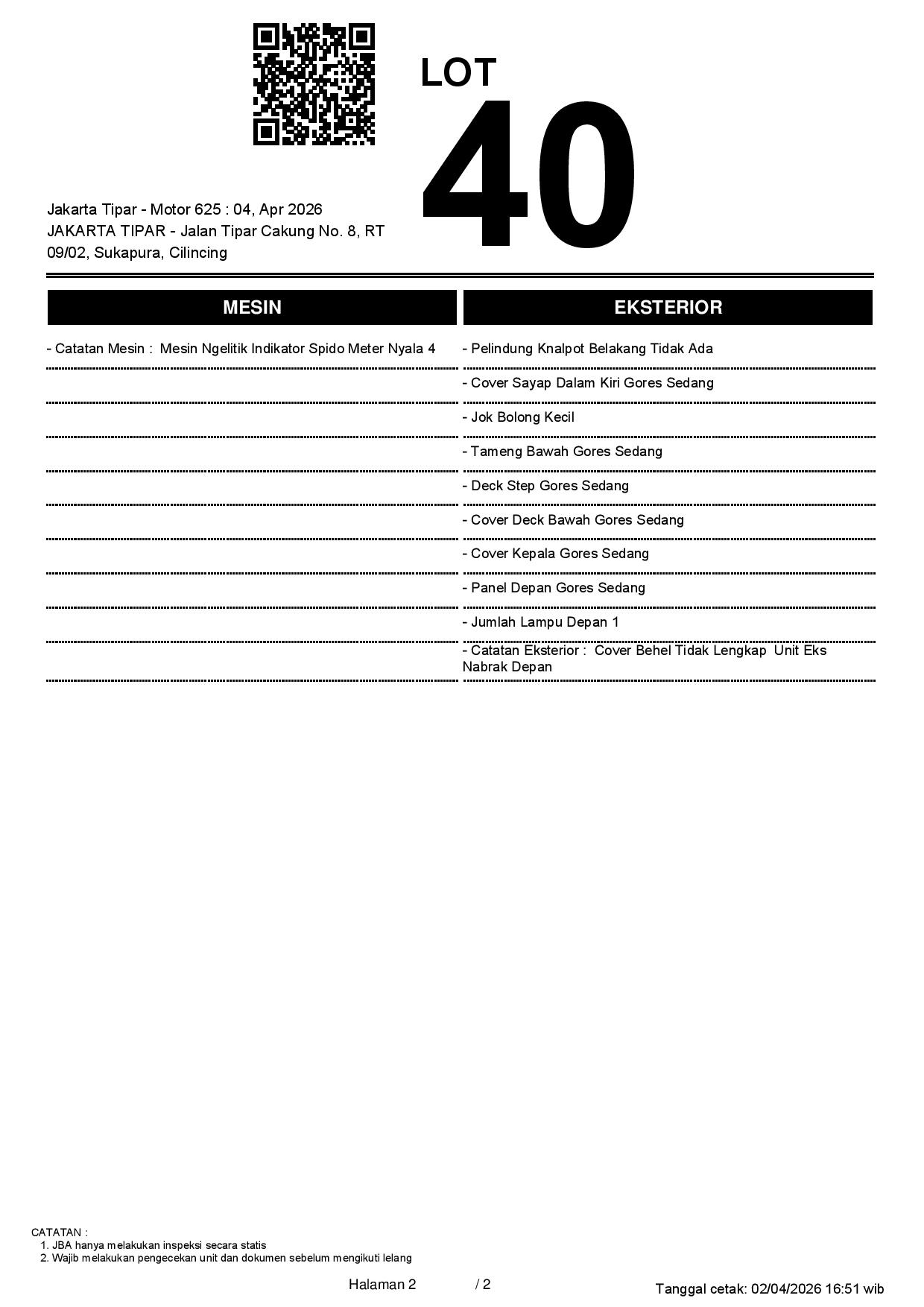 2. Peserta lelang wajib cek unit & dokumen