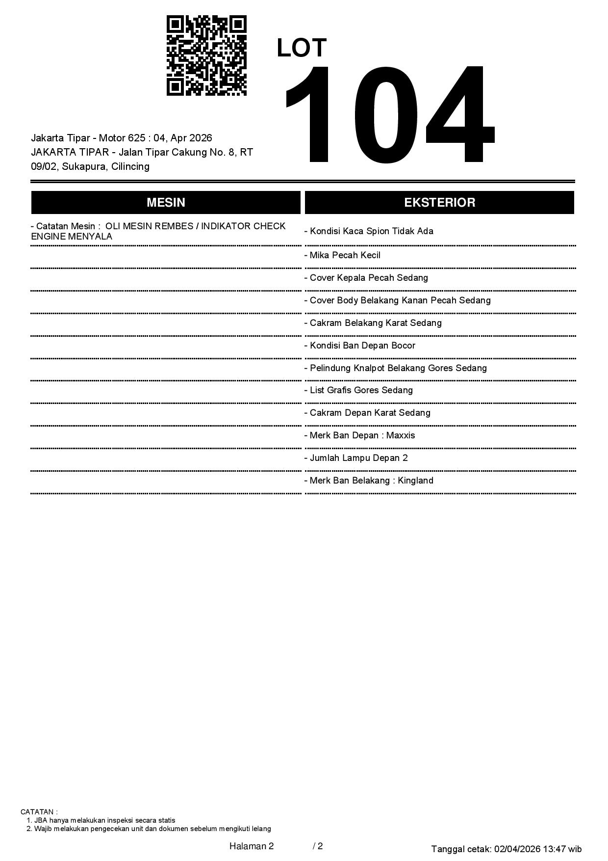 2. Peserta lelang wajib cek unit & dokumen