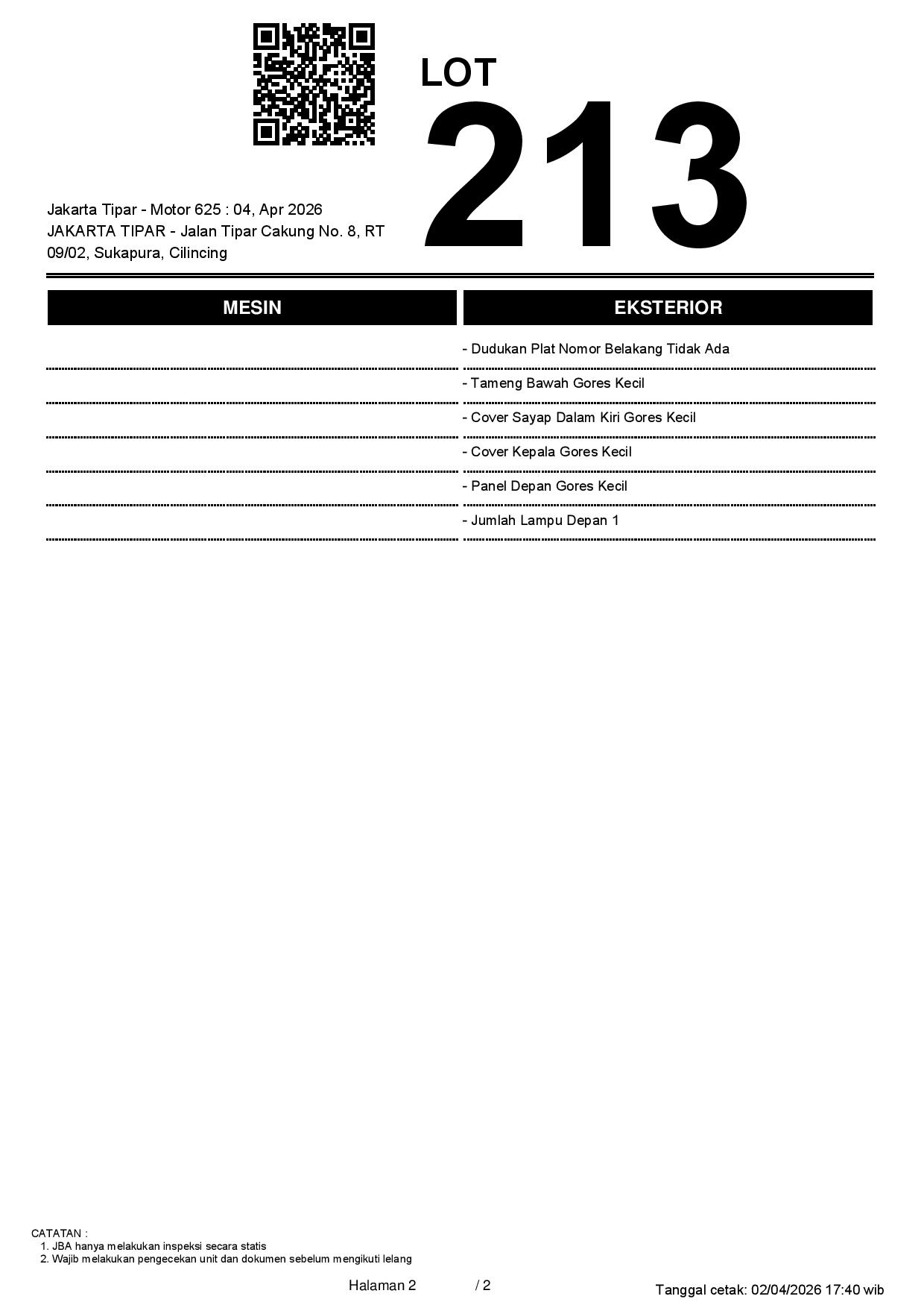 2. Peserta lelang wajib cek unit & dokumen