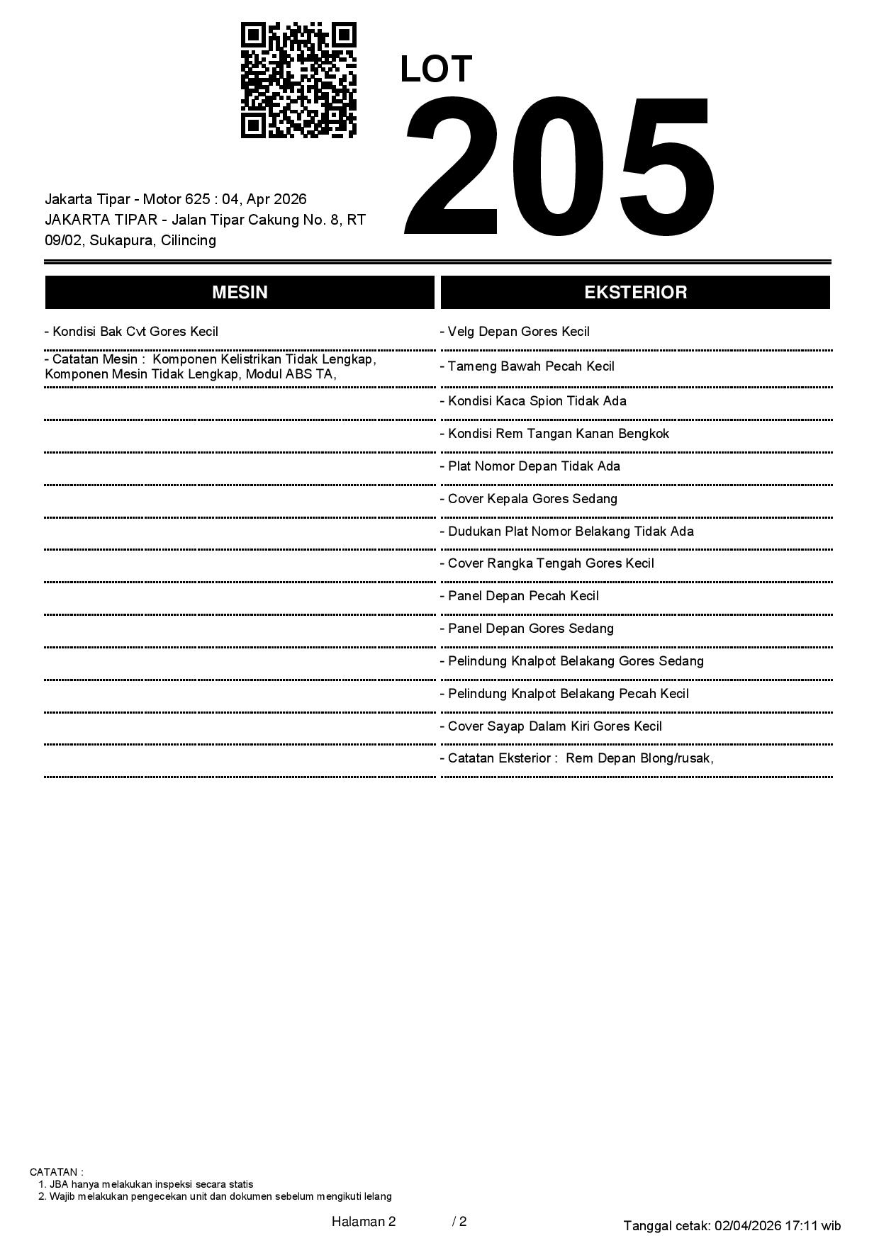 2. Peserta lelang wajib cek unit & dokumen