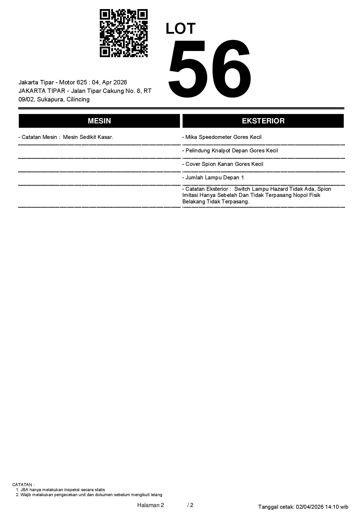2. Peserta lelang wajib cek unit & dokumen