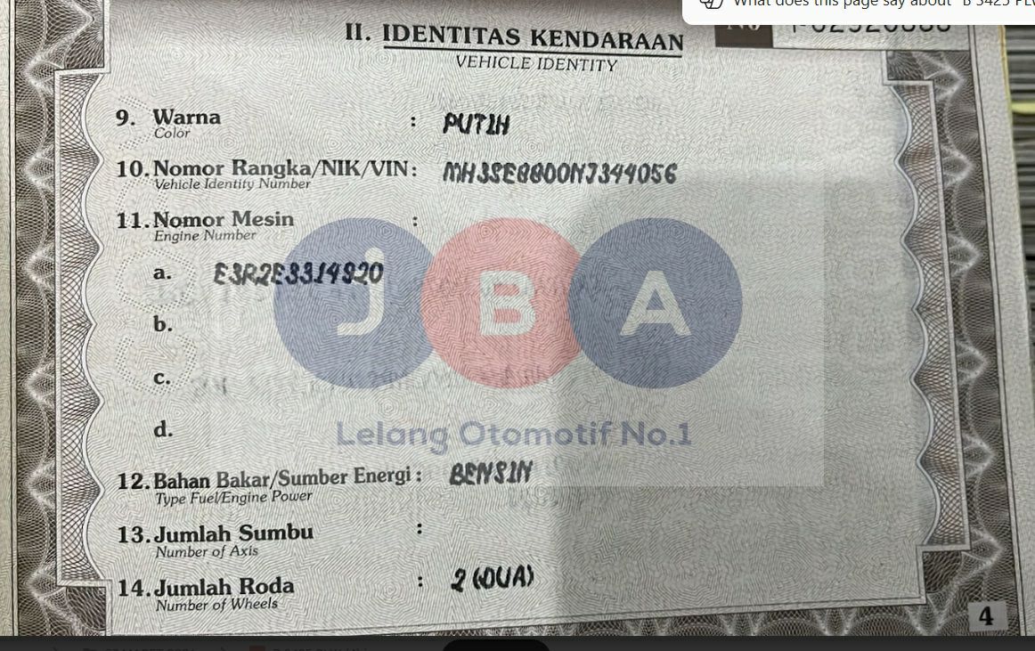 B 3425 PLW