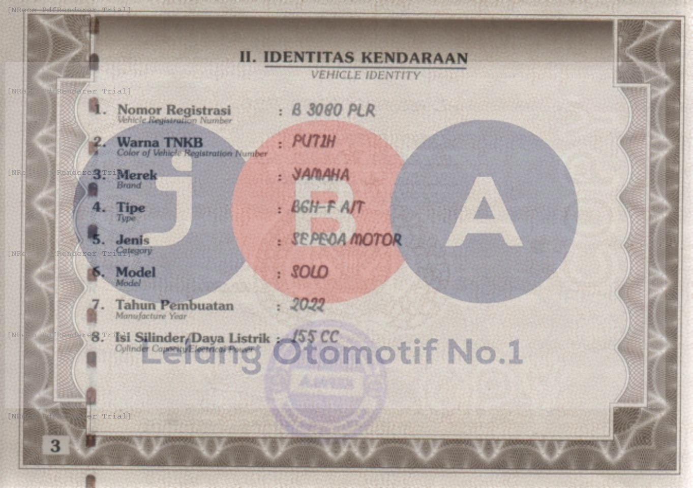 CC SESUAI DENGAN YANG ADA DI STNK // AN PT