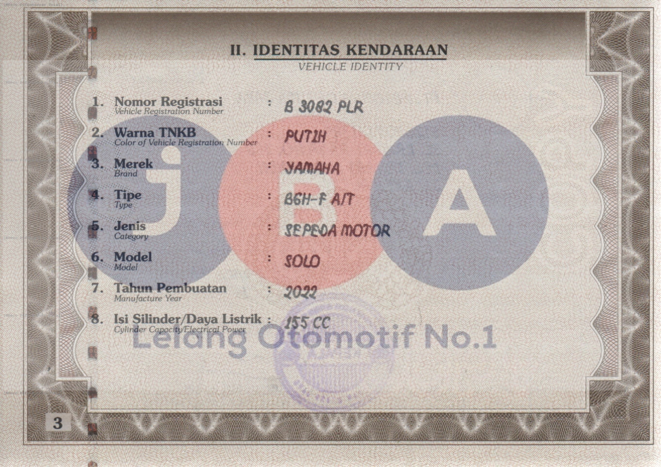 CC SESUAI DENGAN YANG ADA DI STNK // PADA BPKB 155 // AN PT