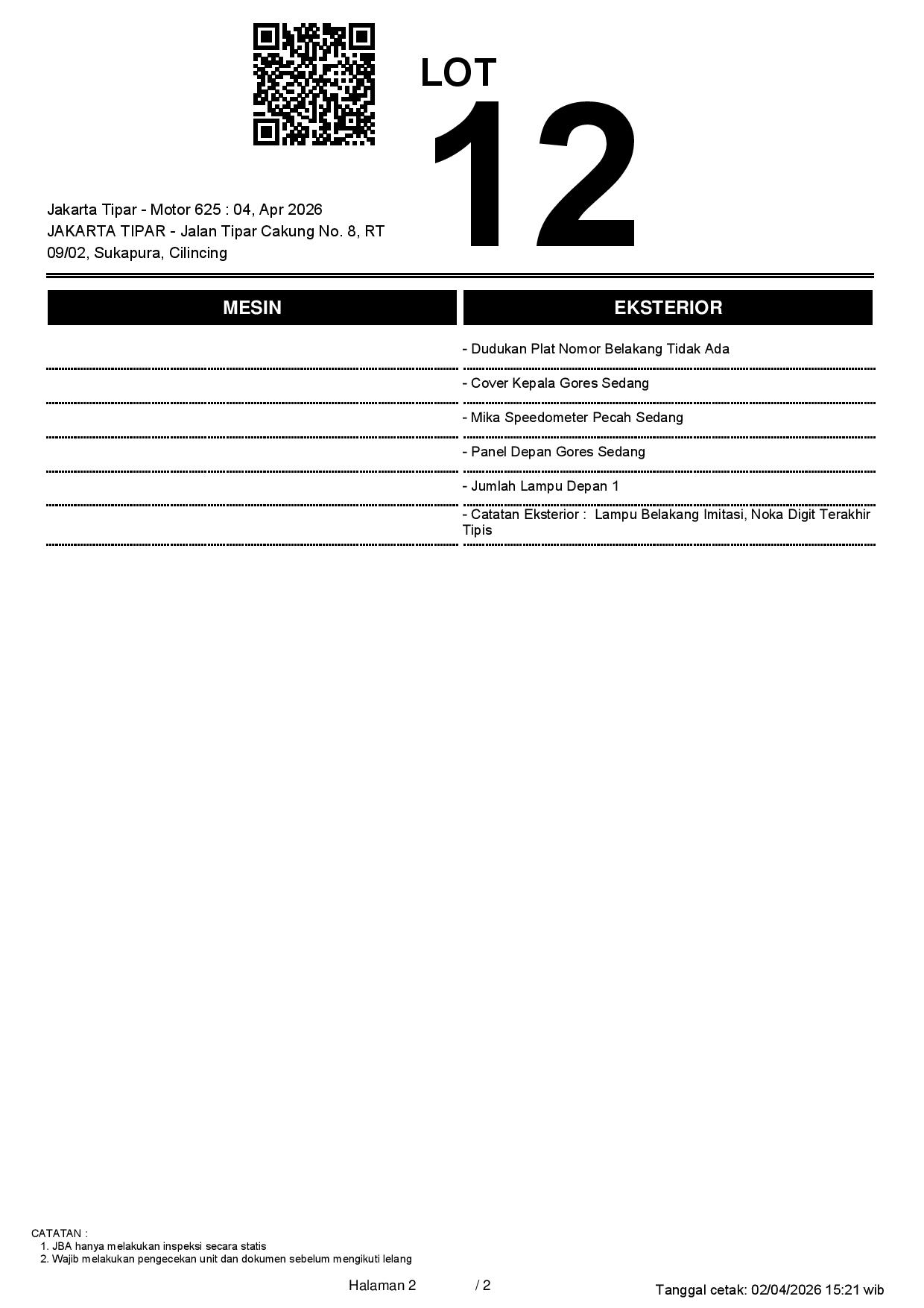 2. Peserta lelang wajib cek unit & dokumen