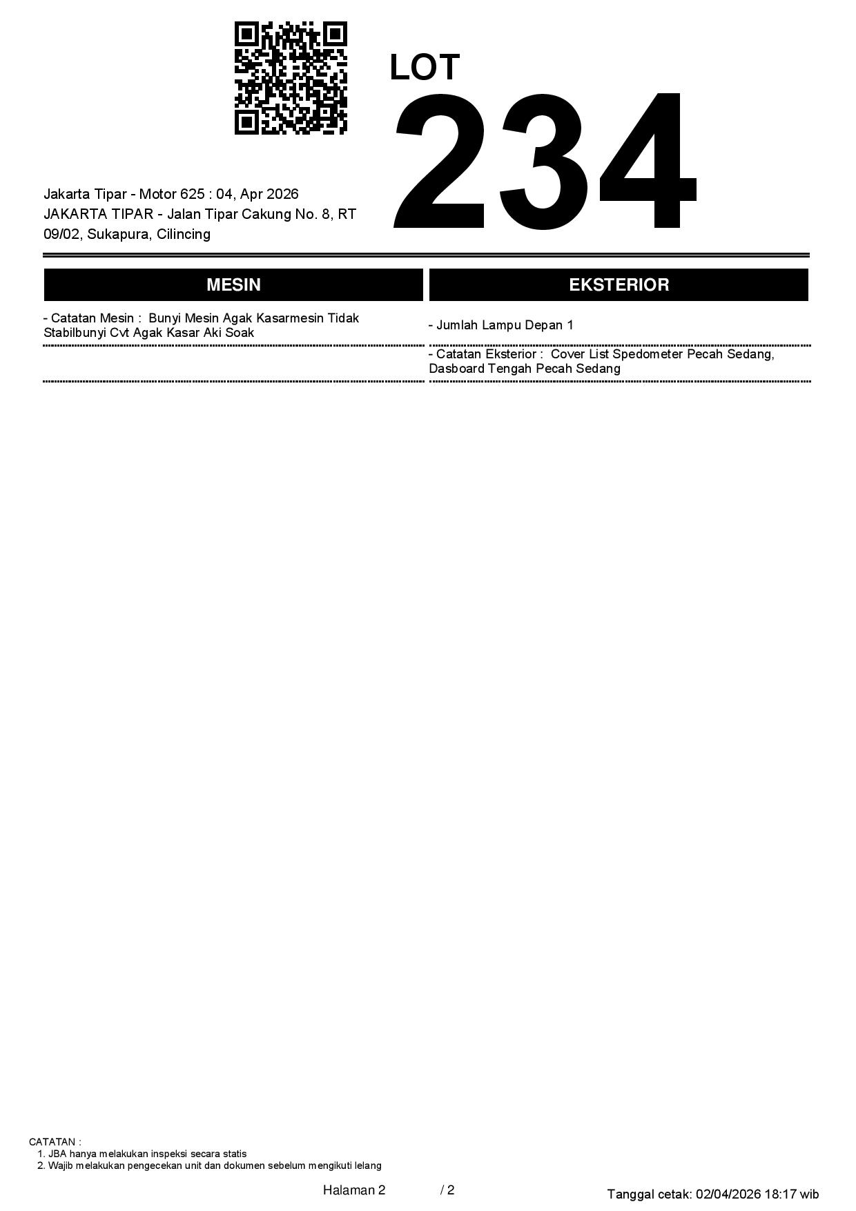 2. Peserta lelang wajib cek unit & dokumen