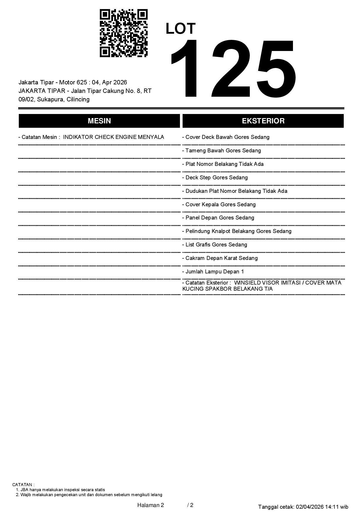 2. Peserta lelang wajib cek unit & dokumen