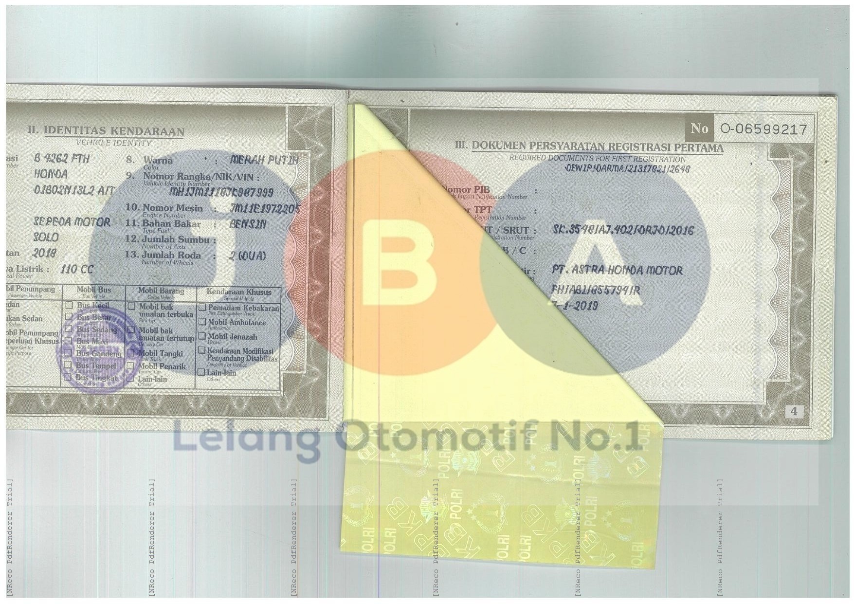 CC SESUAI DENGAN YANG ADA DI STNK // WARNA UNIT DISTNK & NOTICE PAJAK : MERAH PUTIH