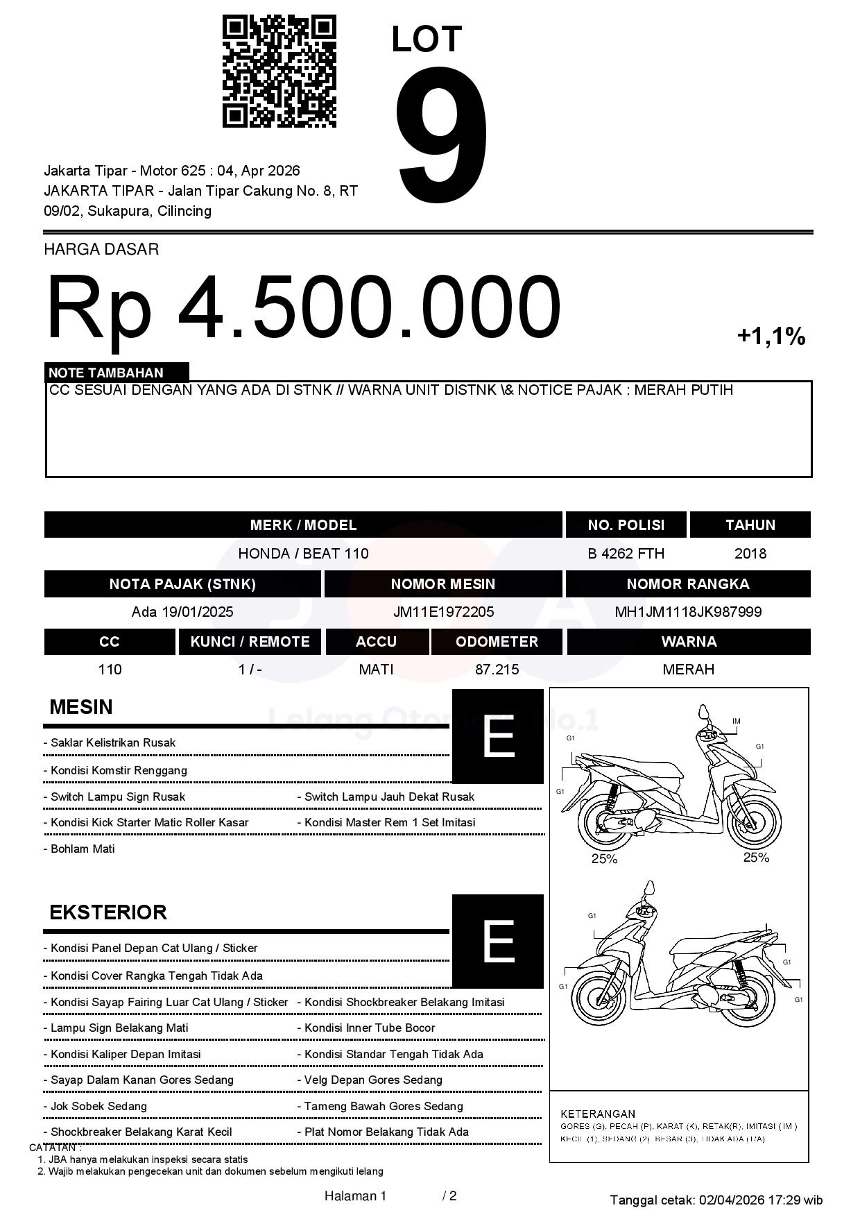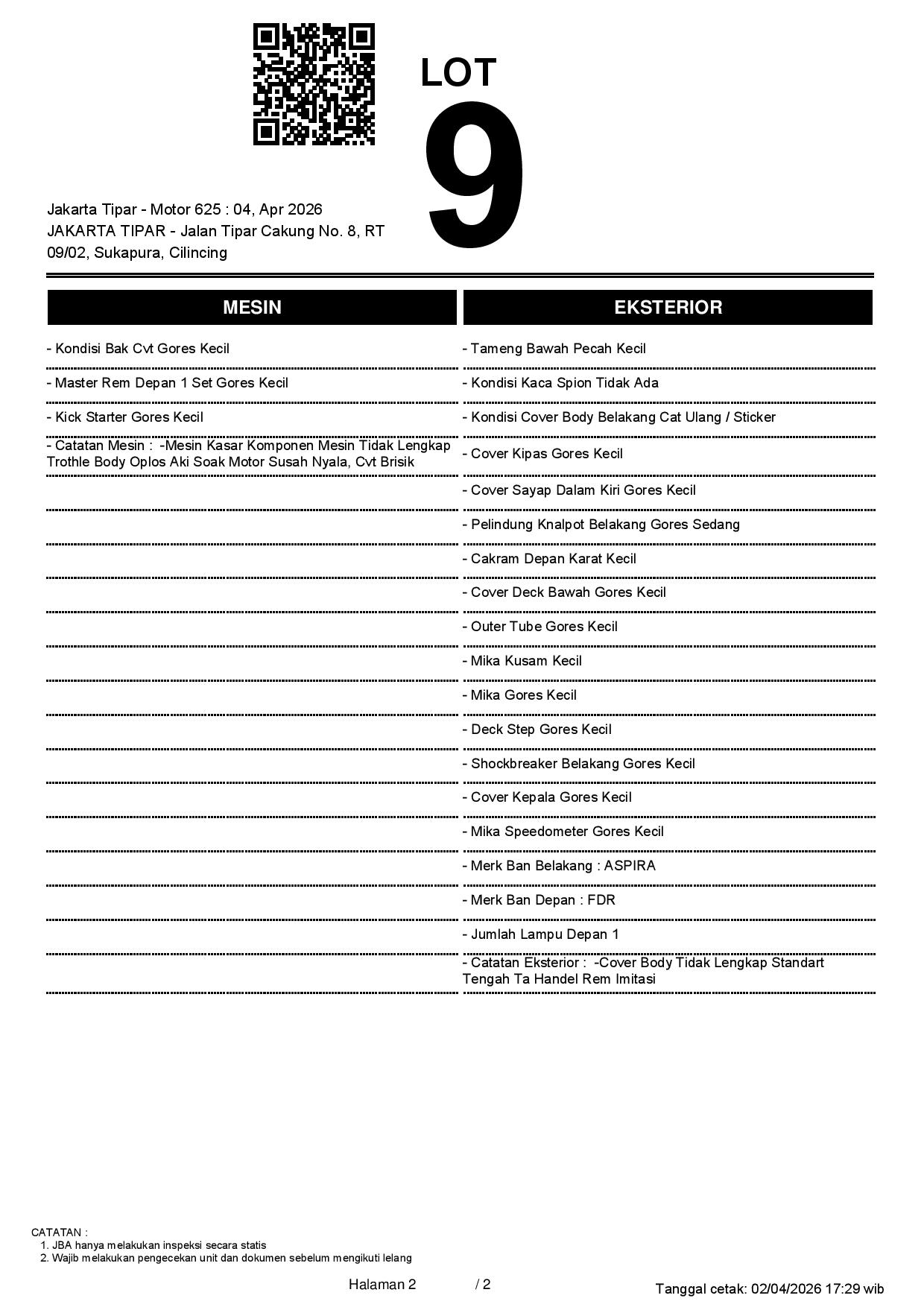 2. Peserta lelang wajib cek unit & dokumen
