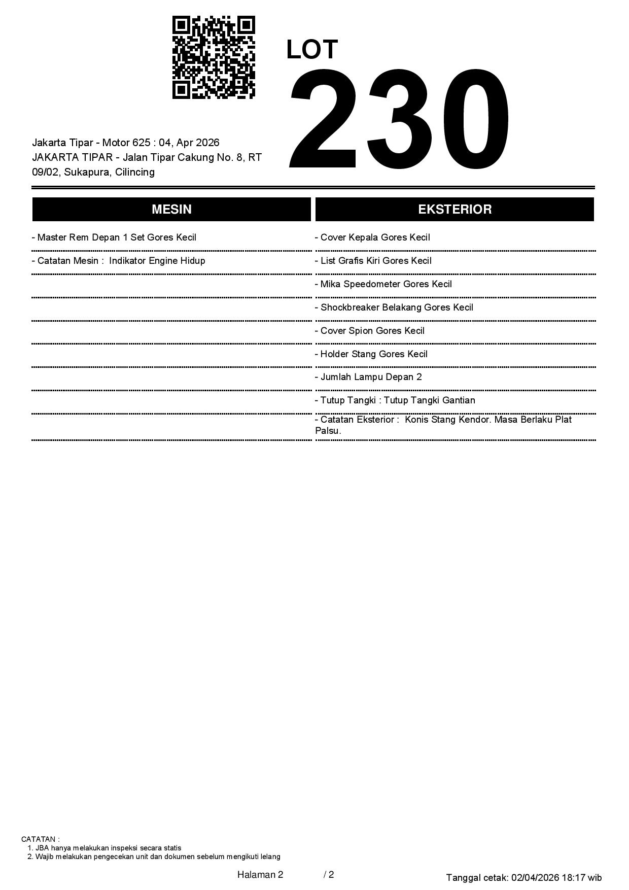 2. Peserta lelang wajib cek unit & dokumen