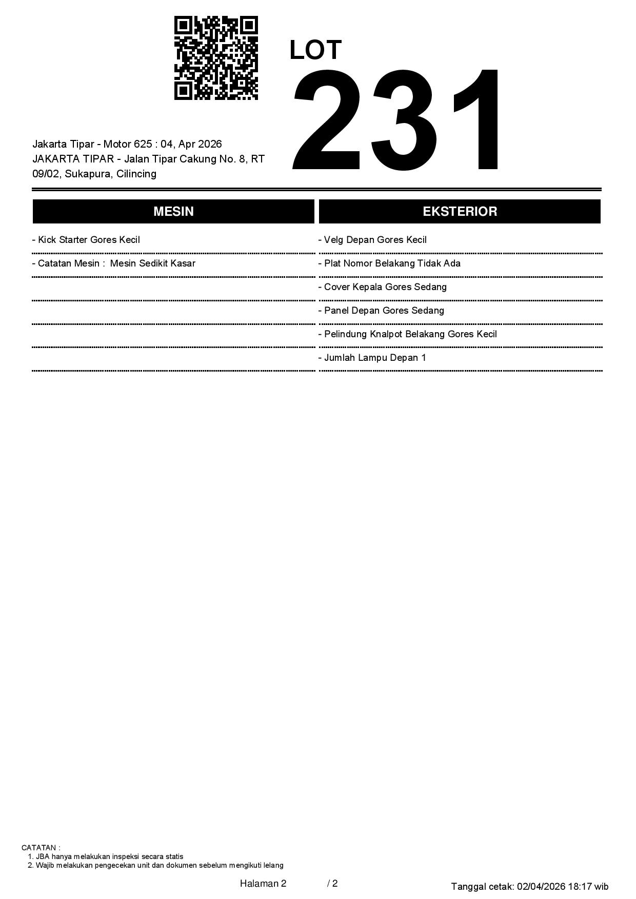 2. Peserta lelang wajib cek unit & dokumen