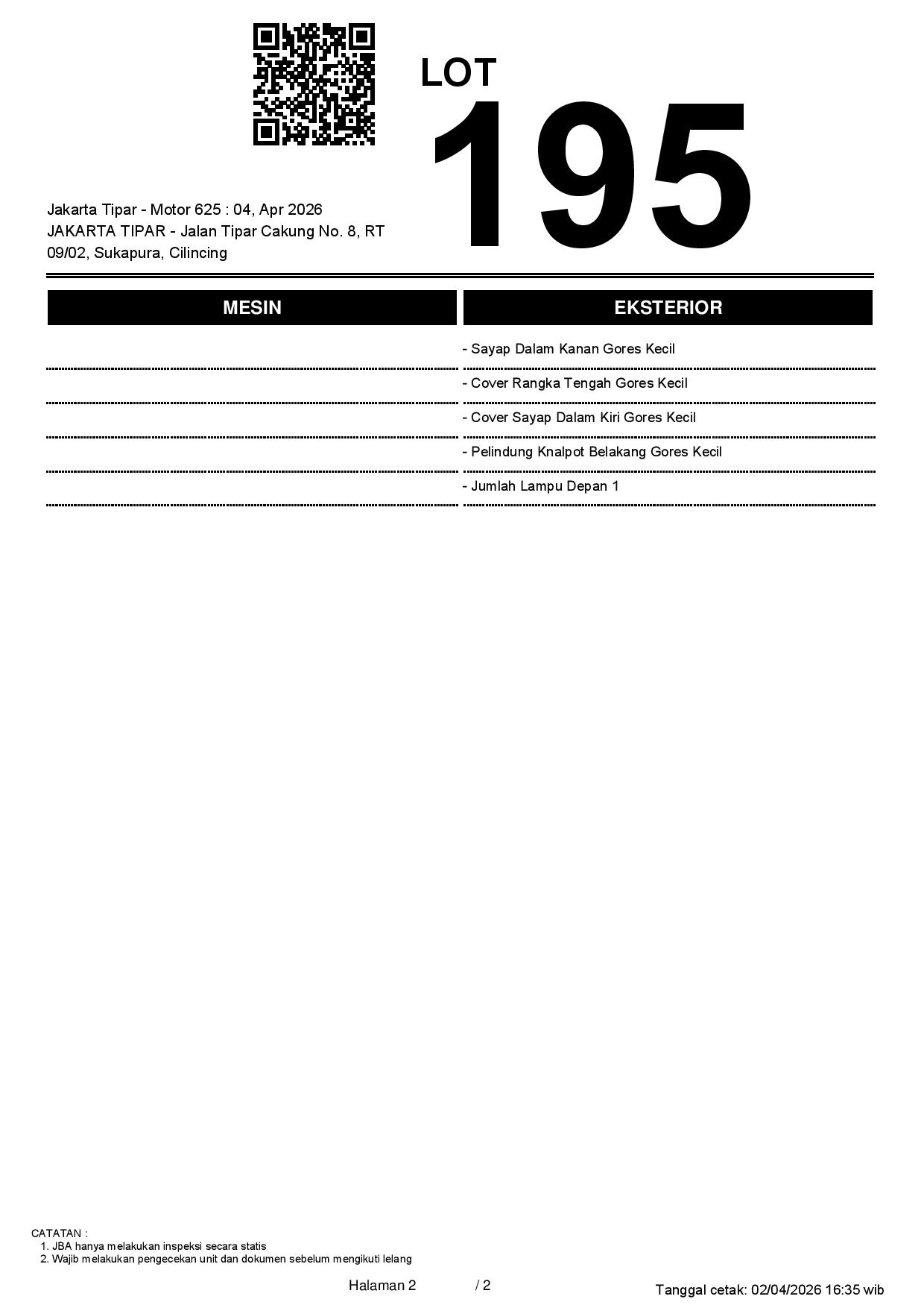 2. Peserta lelang wajib cek unit & dokumen