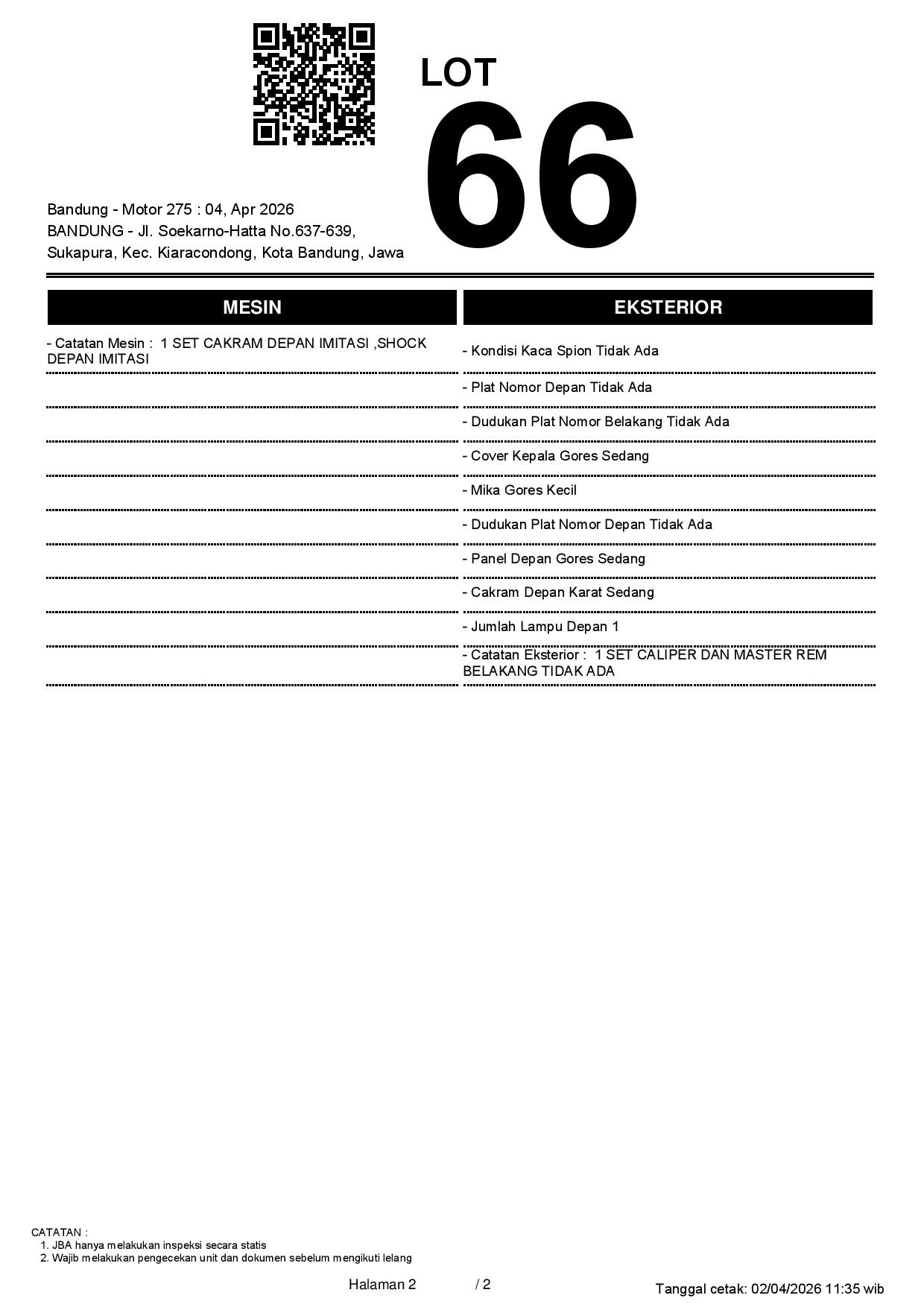2. Peserta lelang wajib cek unit & dokumen
