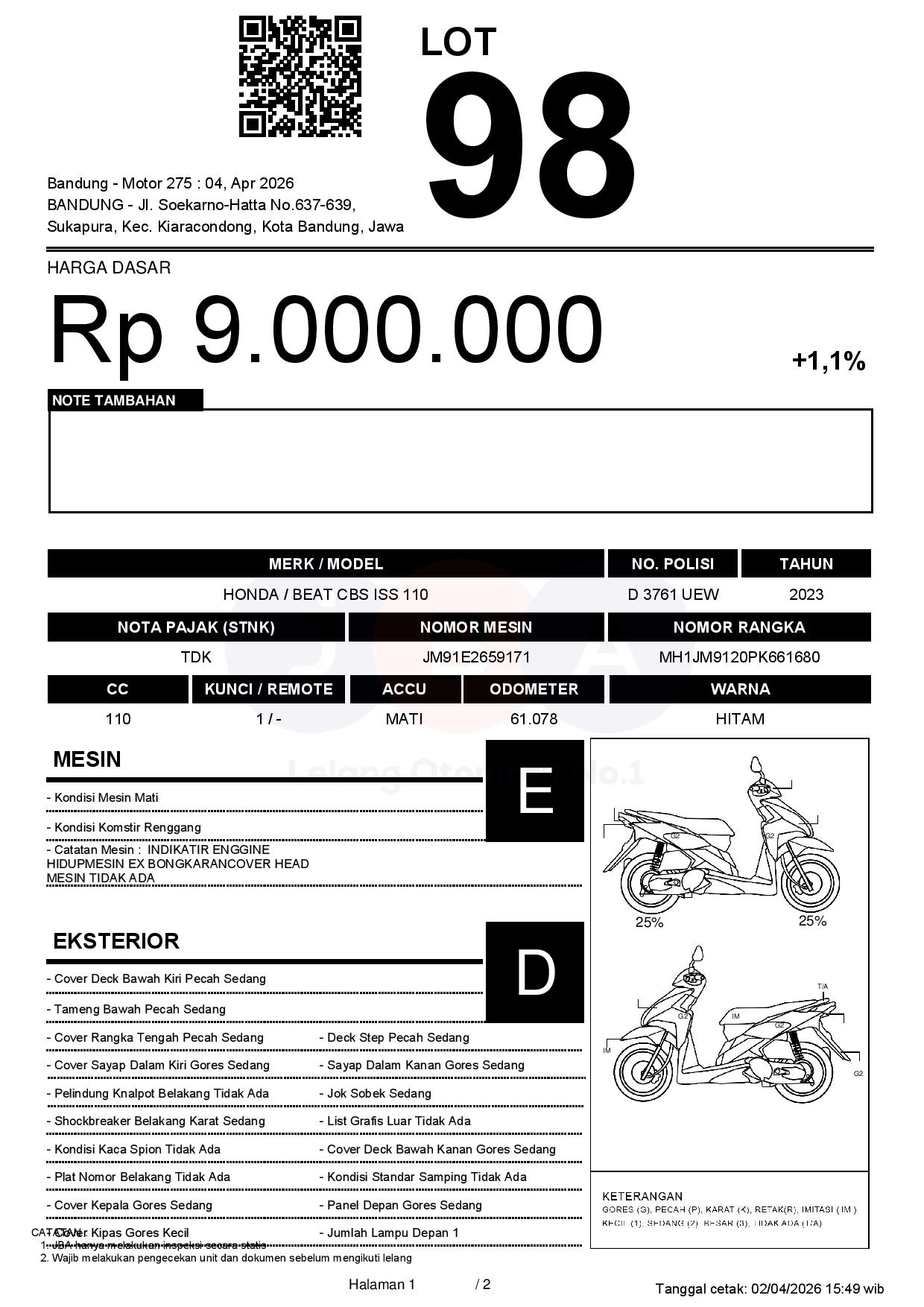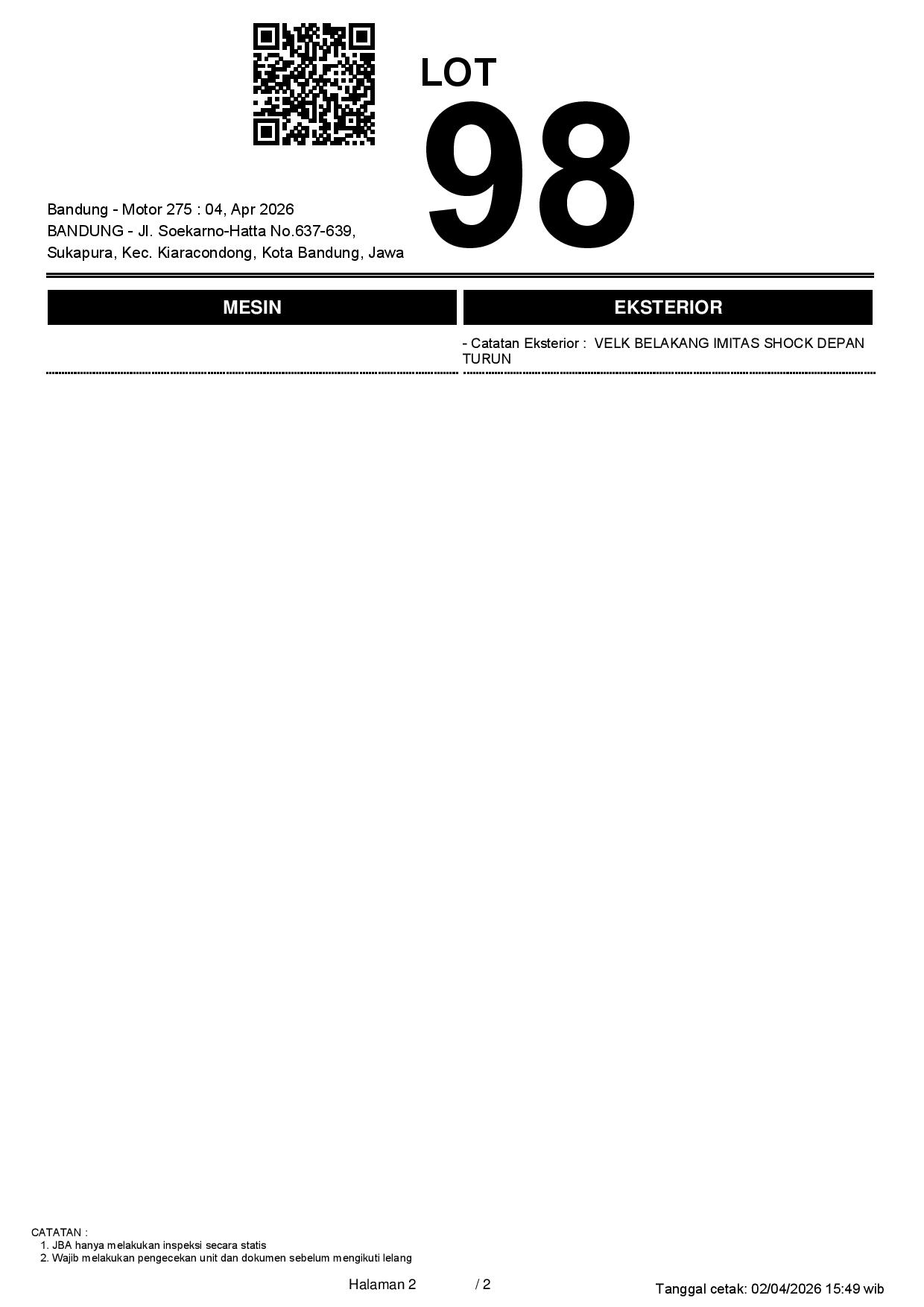2. Peserta lelang wajib cek unit & dokumen