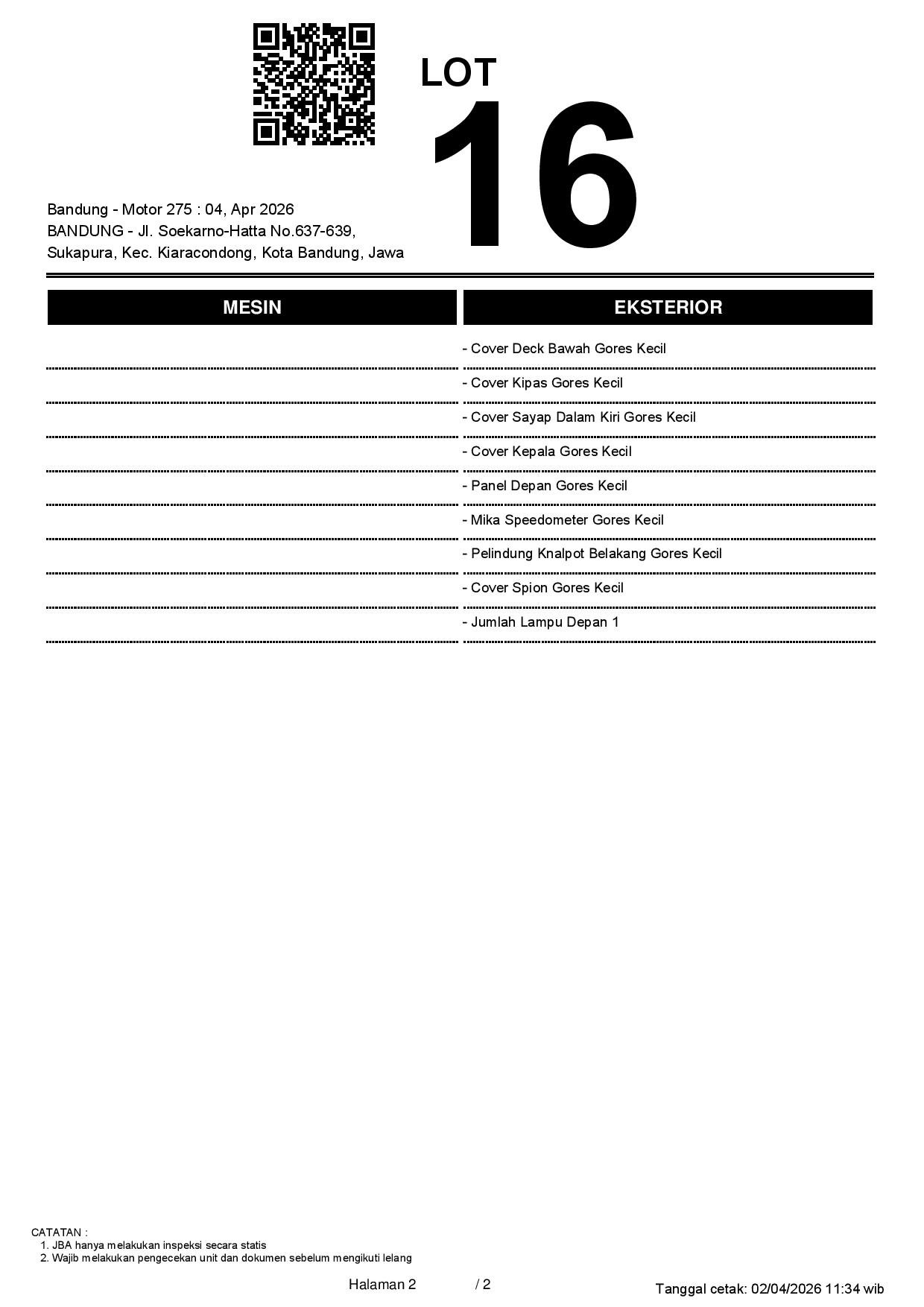 2. Peserta lelang wajib cek unit & dokumen