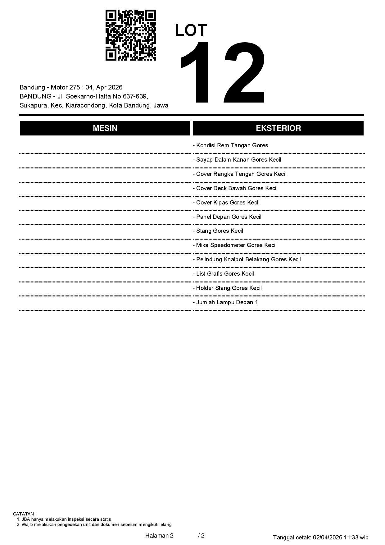 2. Peserta lelang wajib cek unit & dokumen