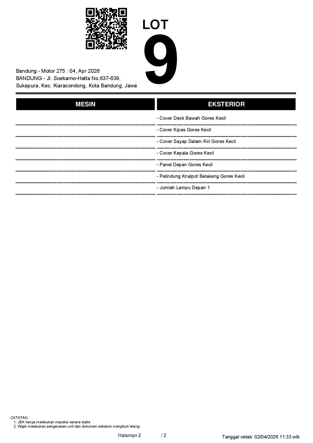 2. Peserta lelang wajib cek unit & dokumen