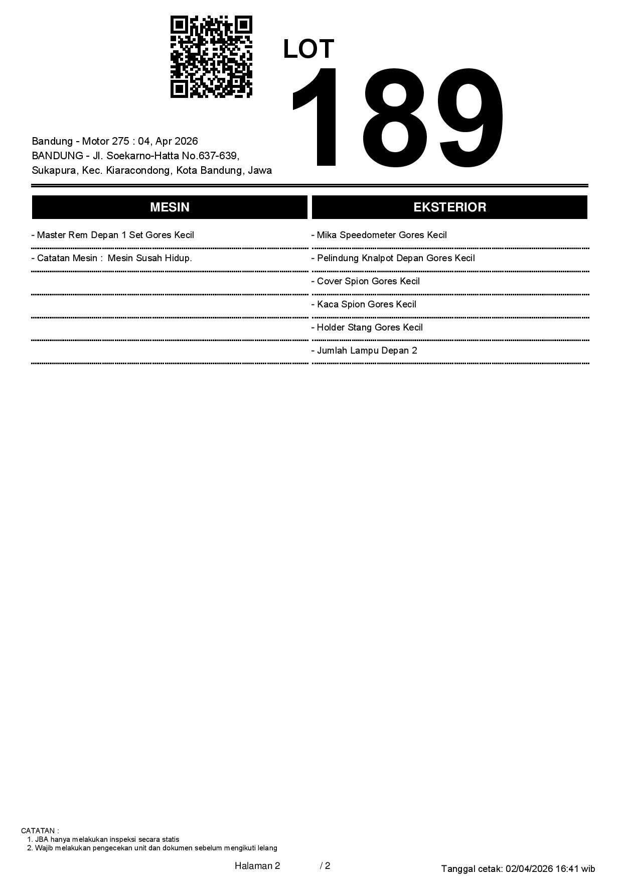 1. Peserta lelang wajib cek unit & dokumen