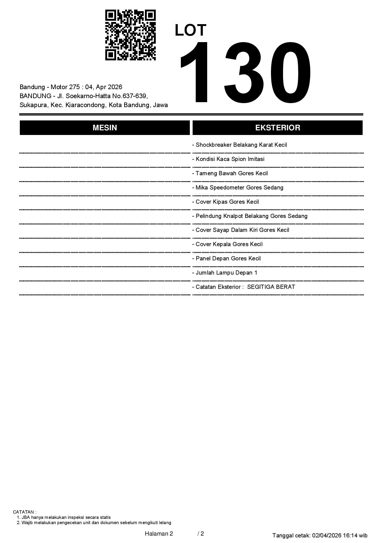 1. Peserta lelang wajib cek unit & dokumen