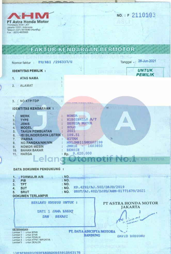 HANYA STNK NOTICE PAJAK T/A //