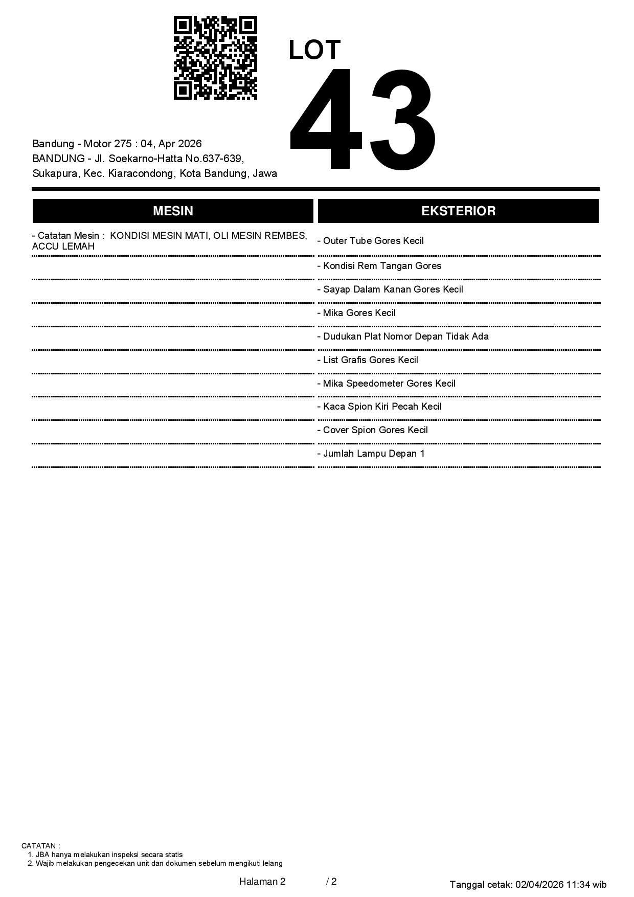 2. Peserta lelang wajib cek unit & dokumen