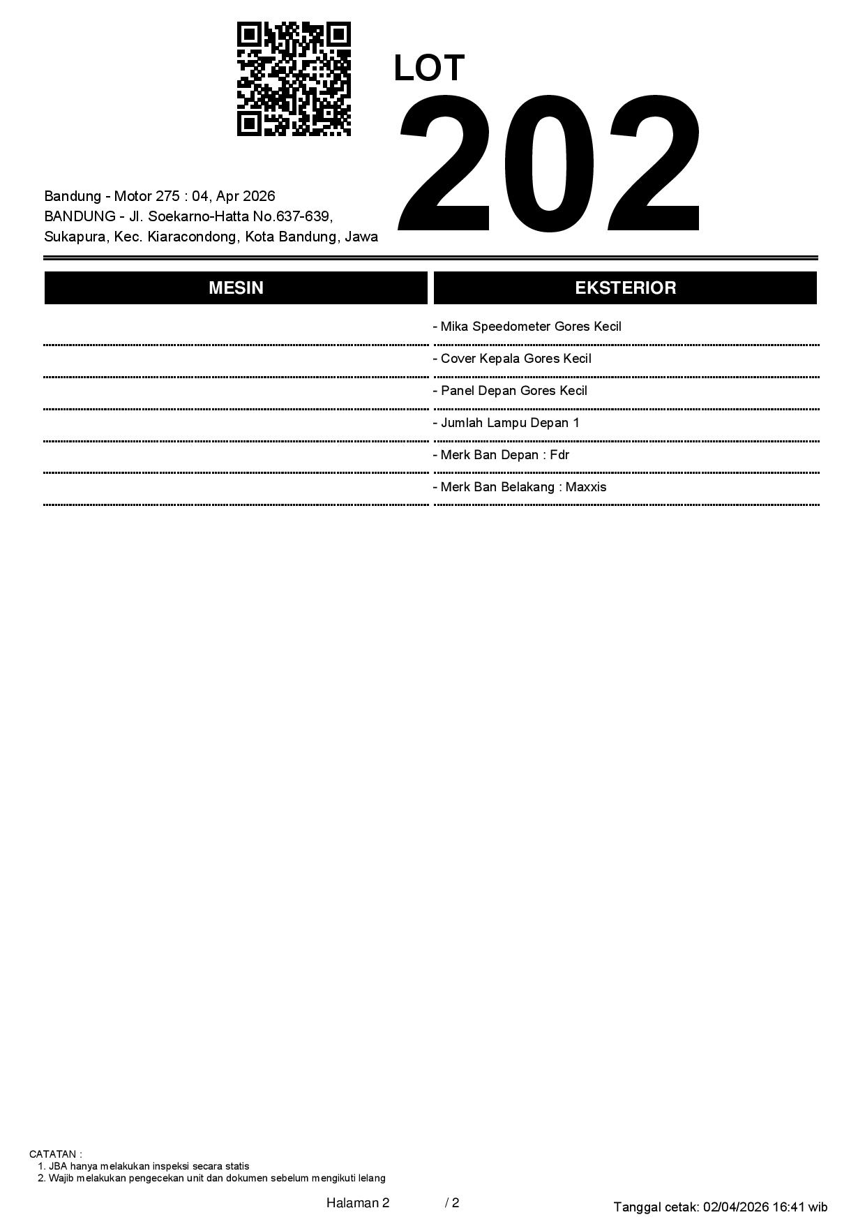 2. Peserta lelang wajib cek unit & dokumen