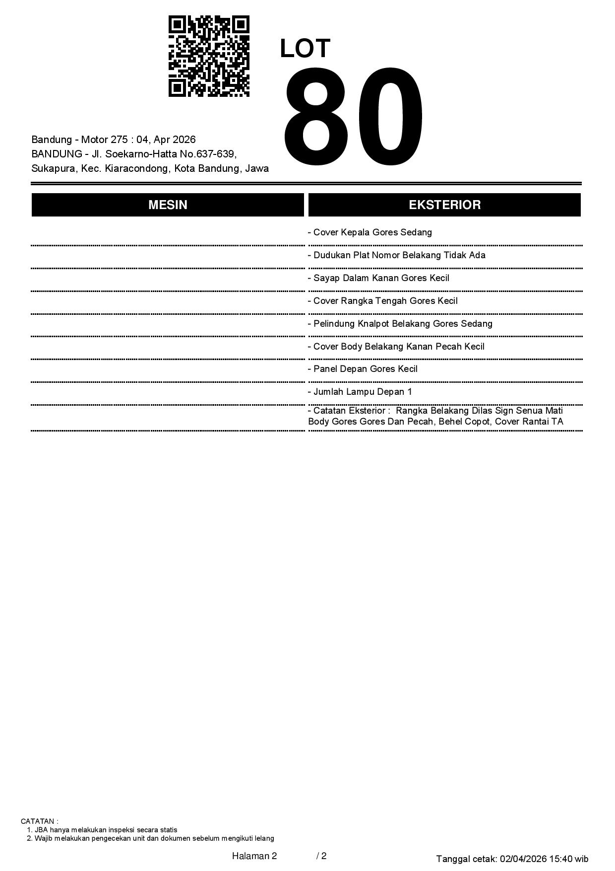 1. Peserta lelang wajib cek unit & dokumen