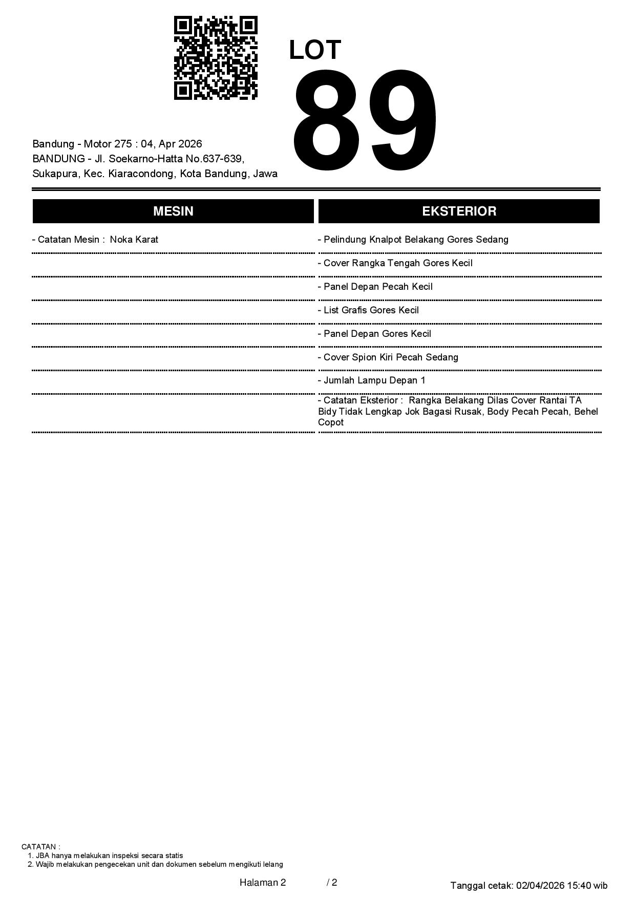 1. Peserta lelang wajib cek unit & dokumen