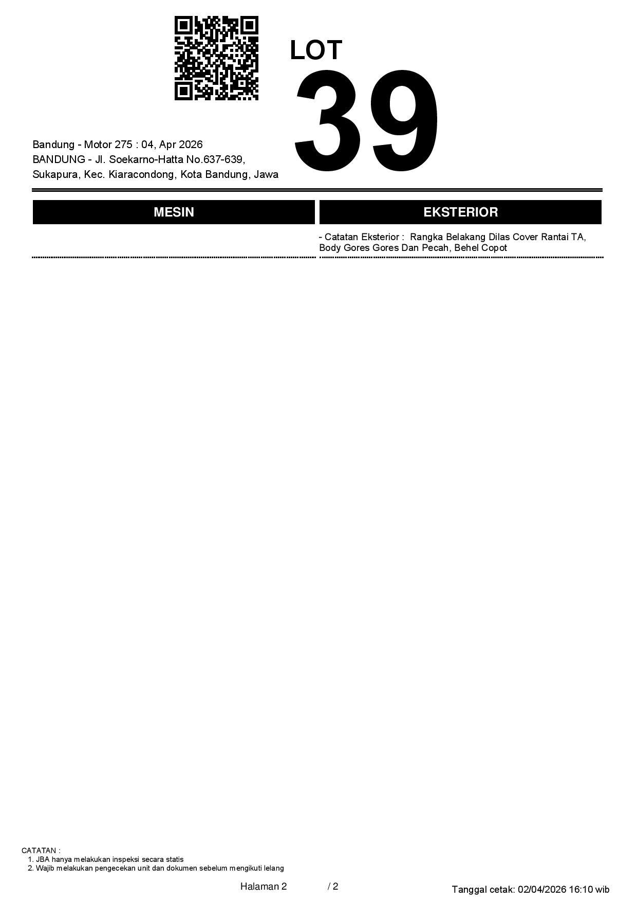 1. Peserta lelang wajib cek unit & dokumen