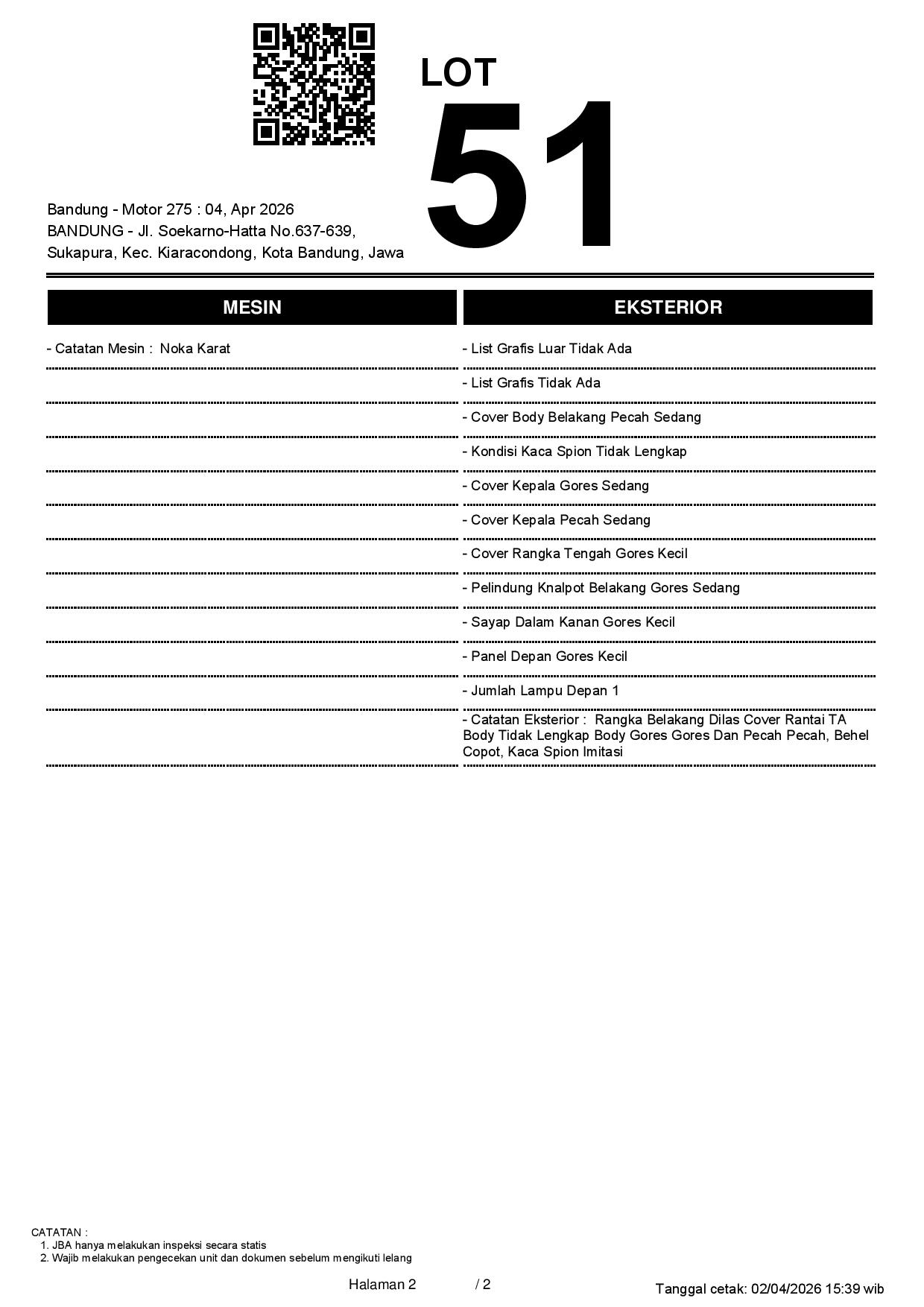 1. Peserta lelang wajib cek unit & dokumen