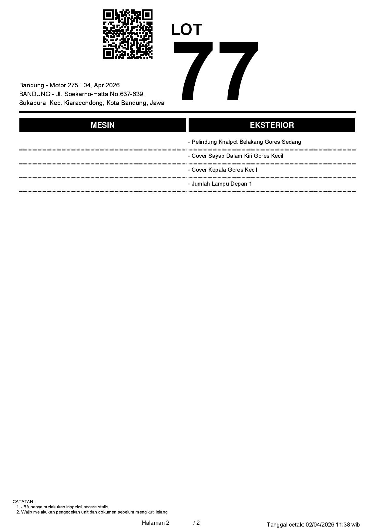 2. Peserta lelang wajib cek unit & dokumen