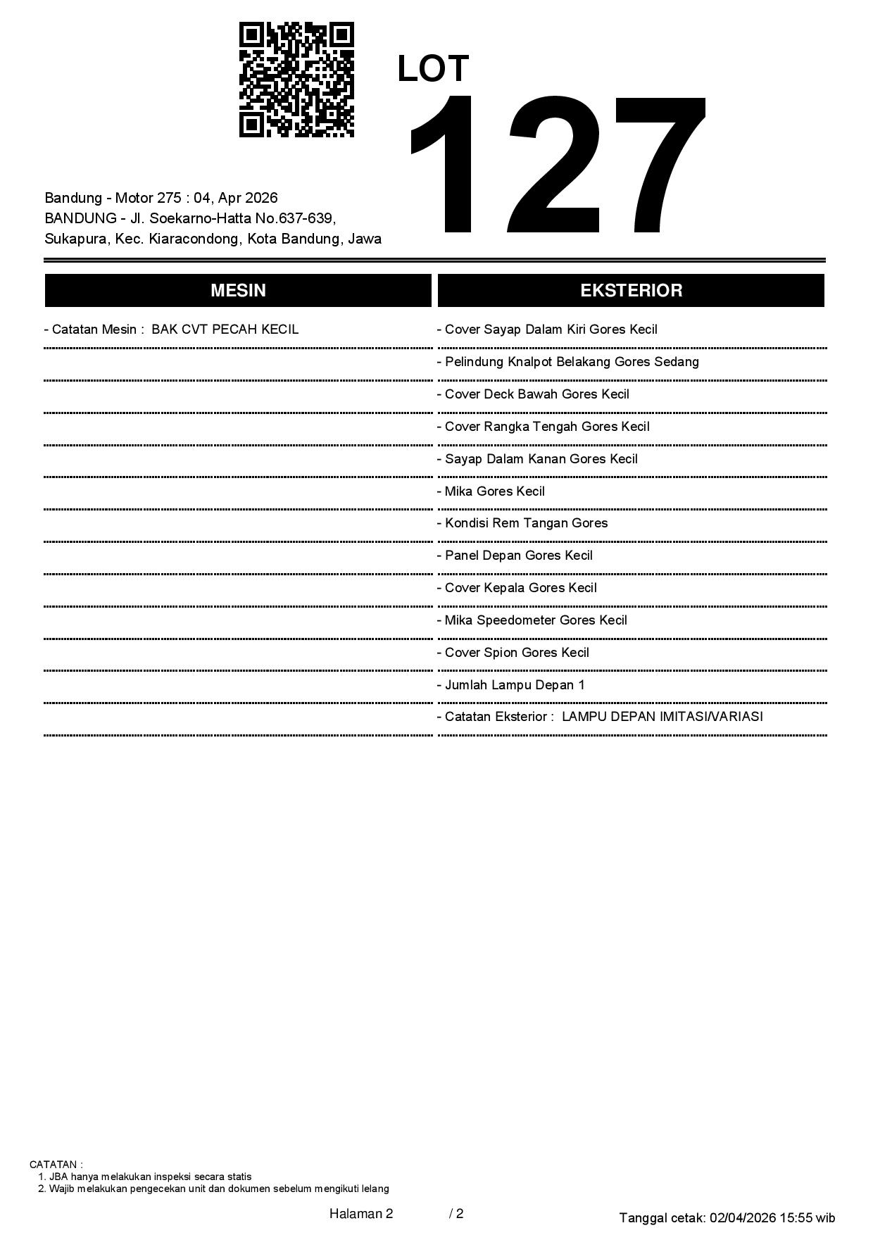 2. Peserta lelang wajib cek unit & dokumen