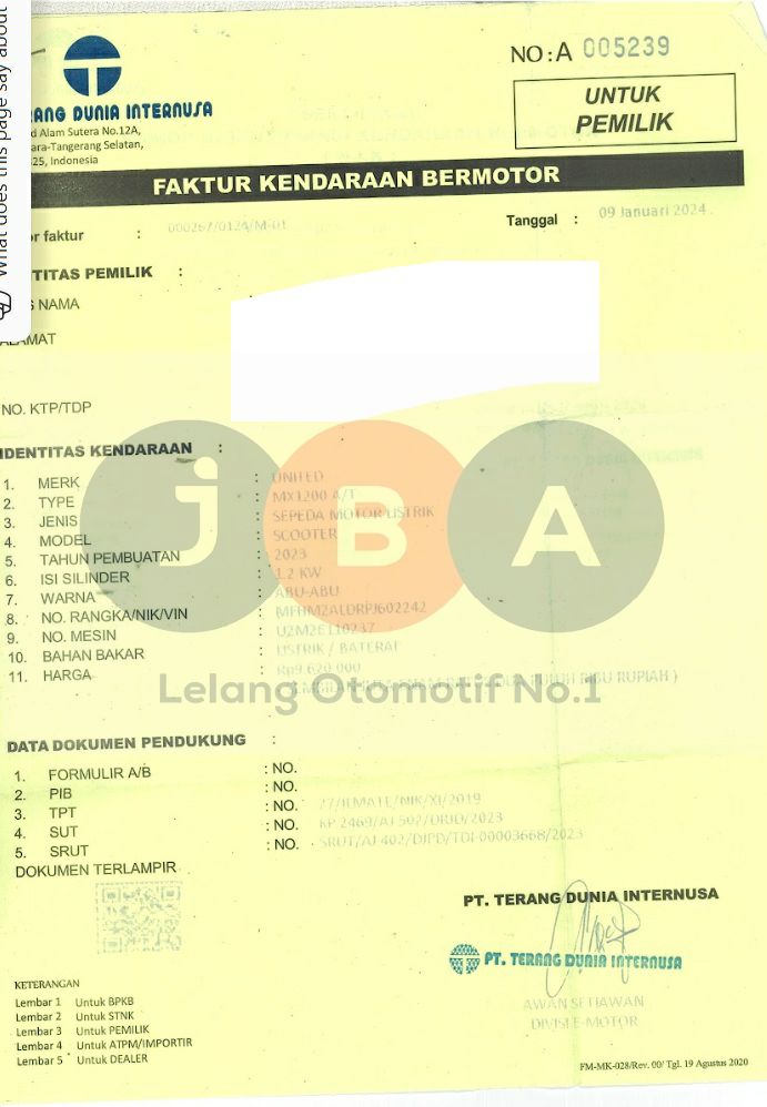 DAYA LISTRIK 1,2 KW // JBA TIDAK MELAKUKAN INPEKSI PADA BATERAI