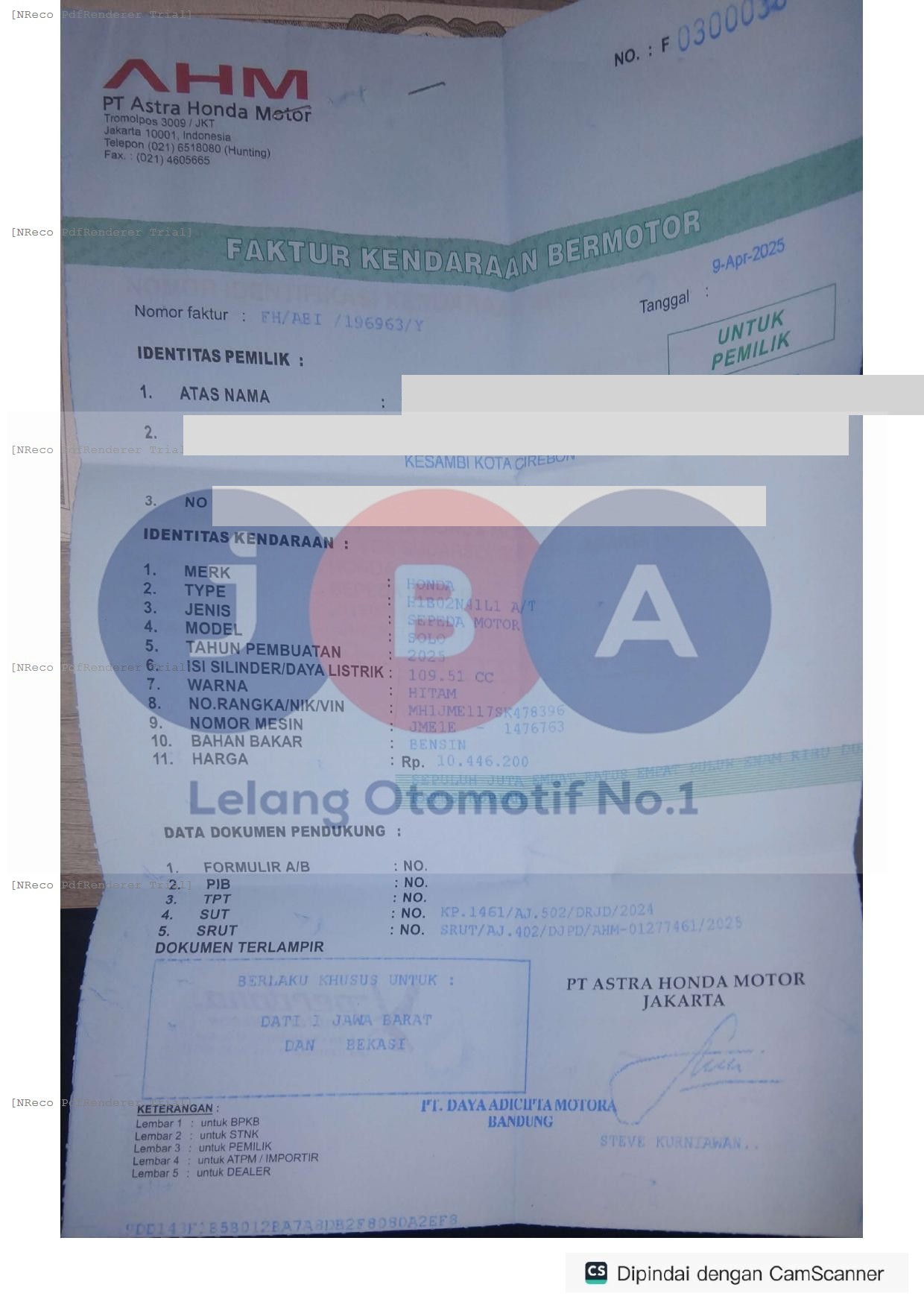 Nomor Rangka