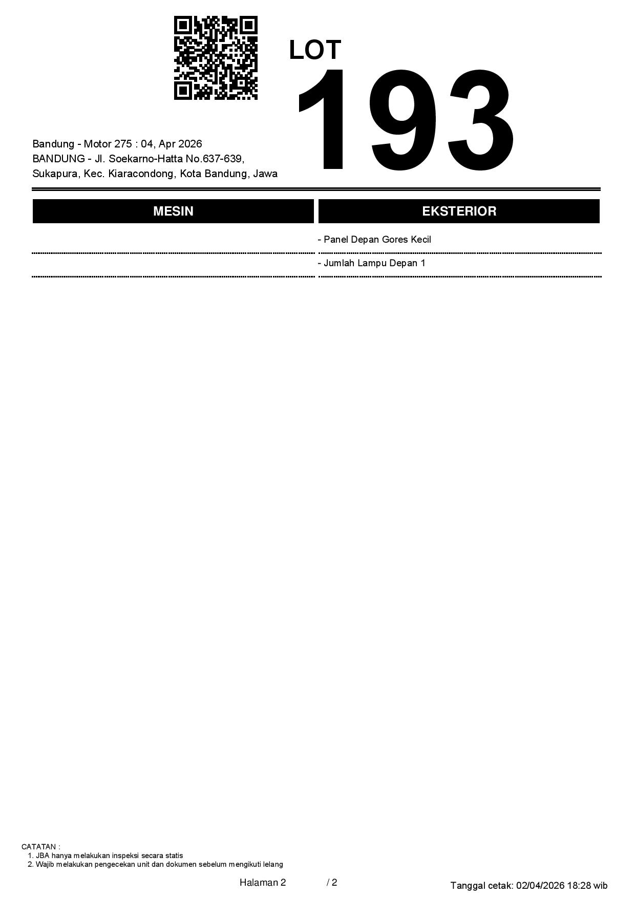 2. Peserta lelang wajib cek unit & dokumen