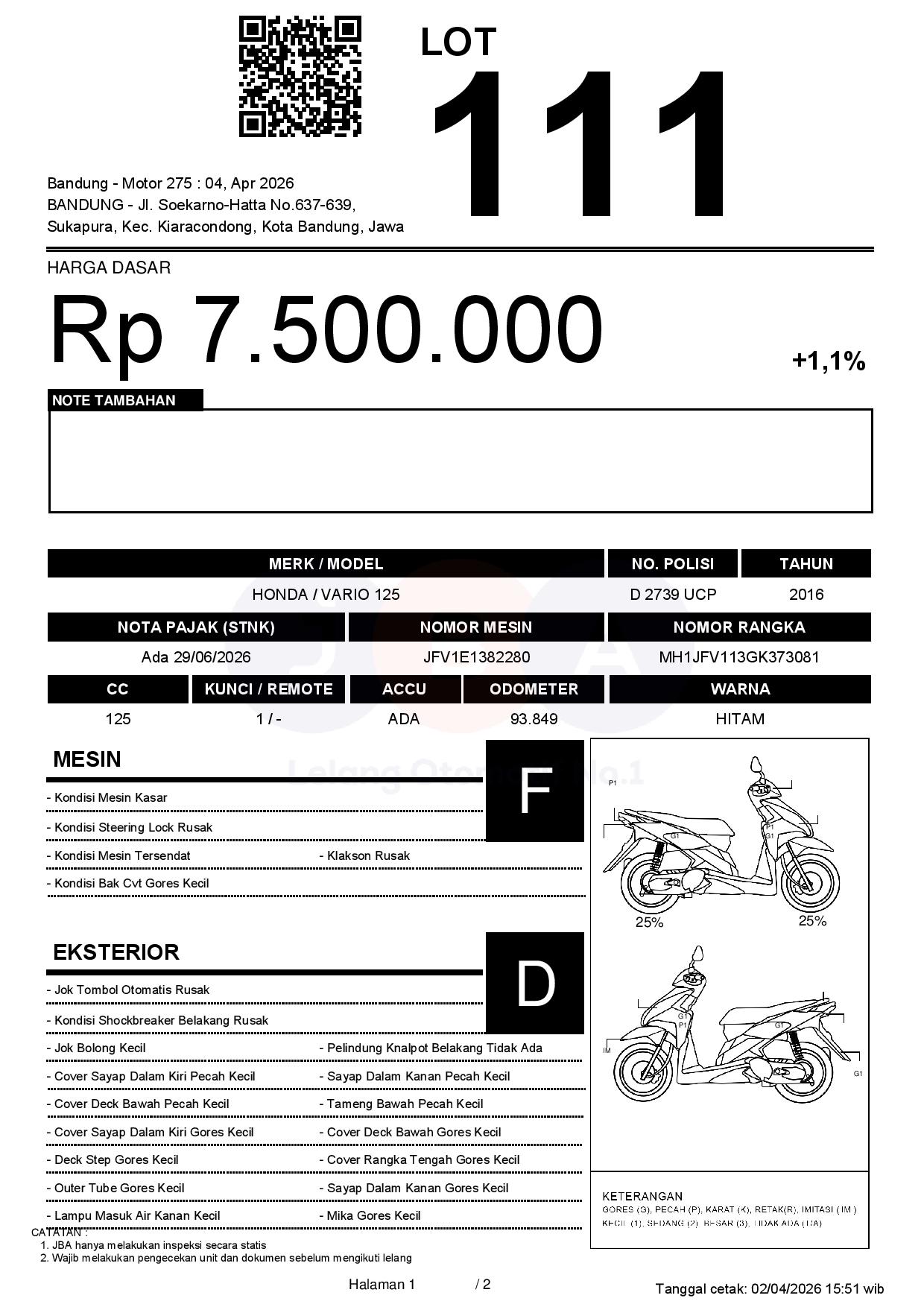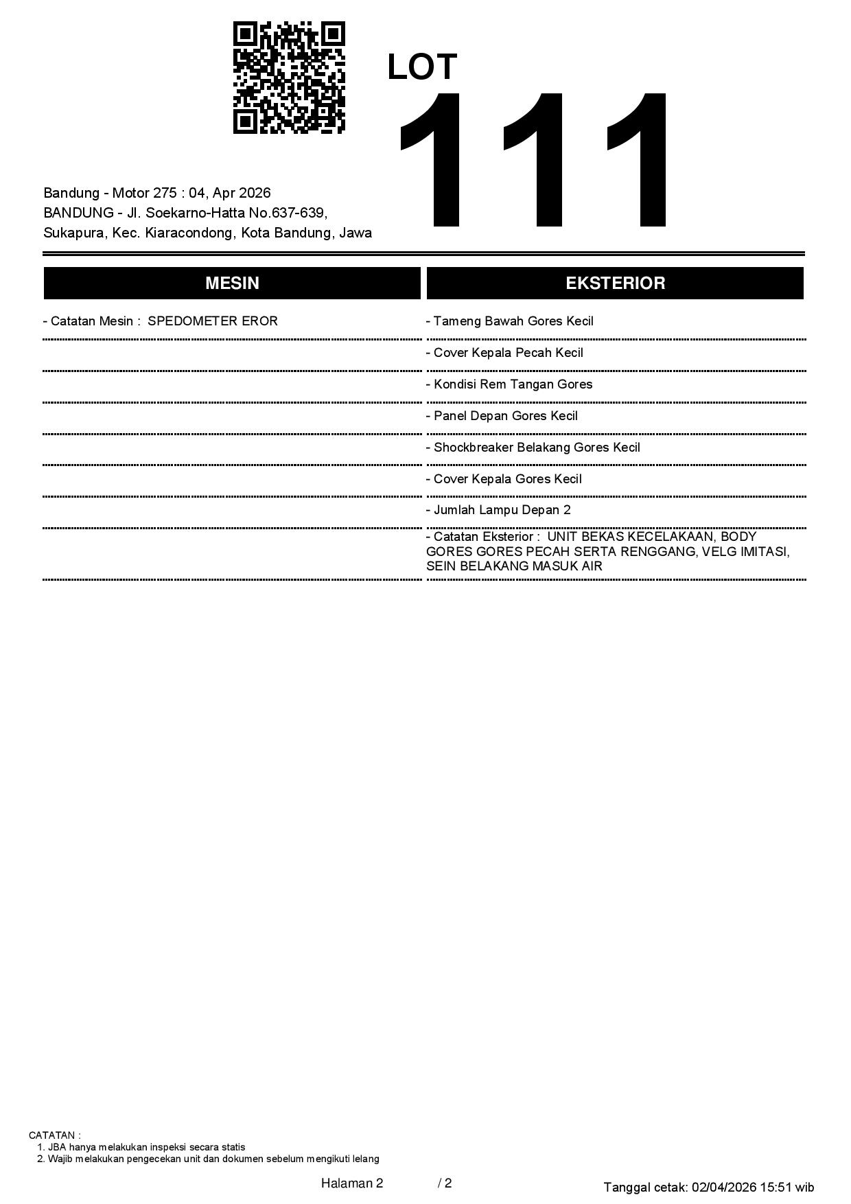 2. Peserta lelang wajib cek unit & dokumen