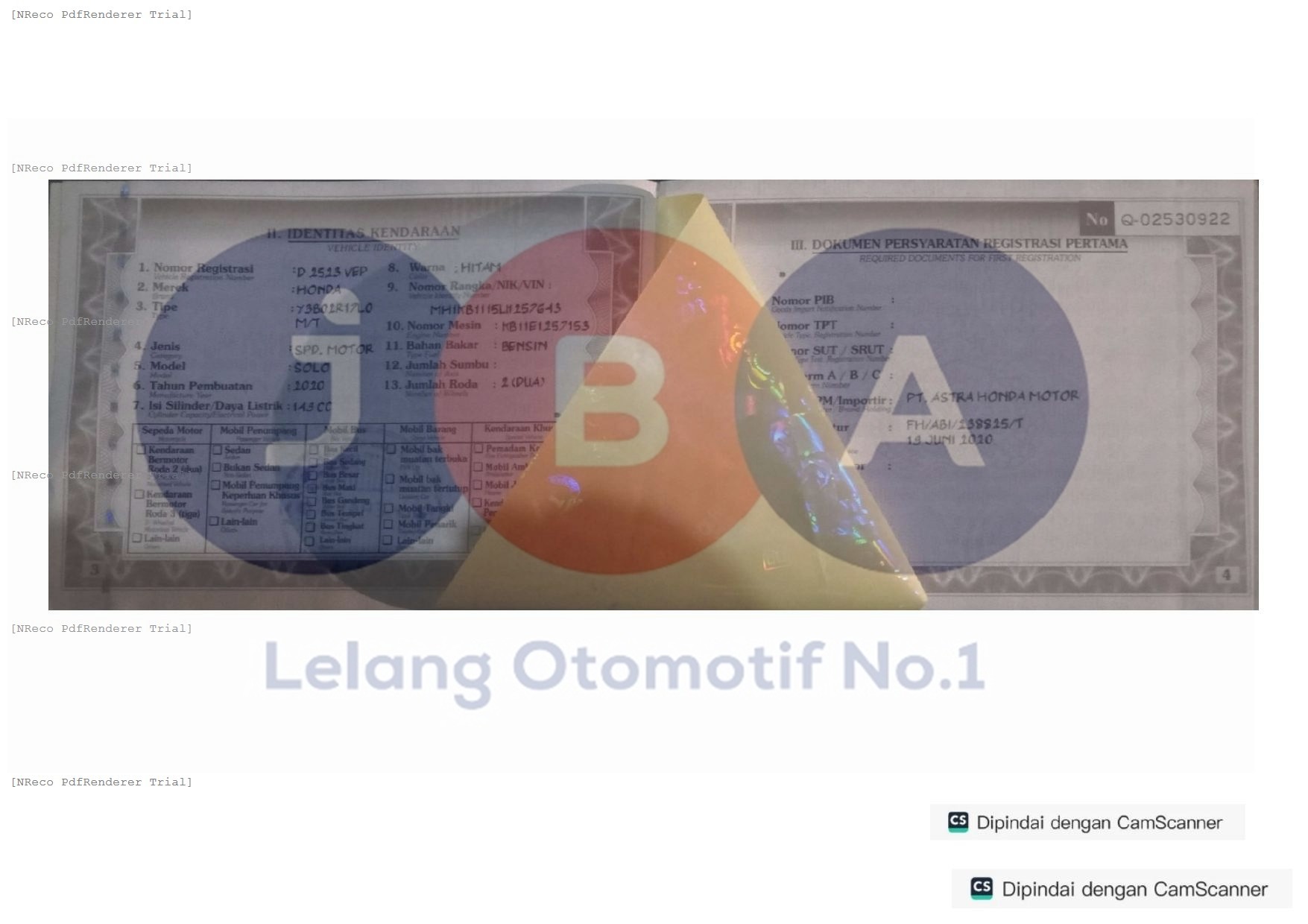 NOPOL FISIK DEPAN TA // 1 DIGIT NOKA PADA BPKB TIDAK RAPI //