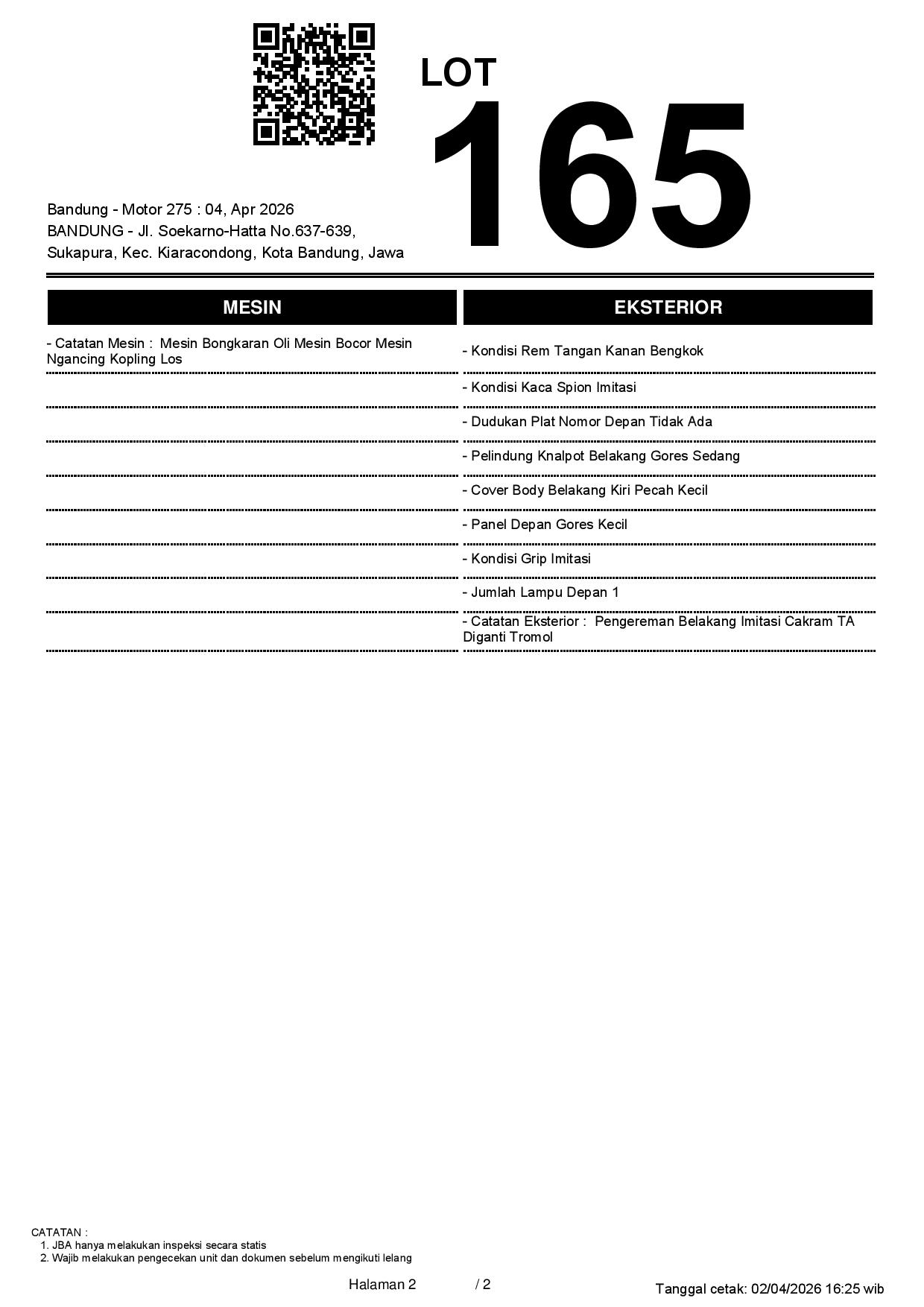 2. Peserta lelang wajib cek unit & dokumen