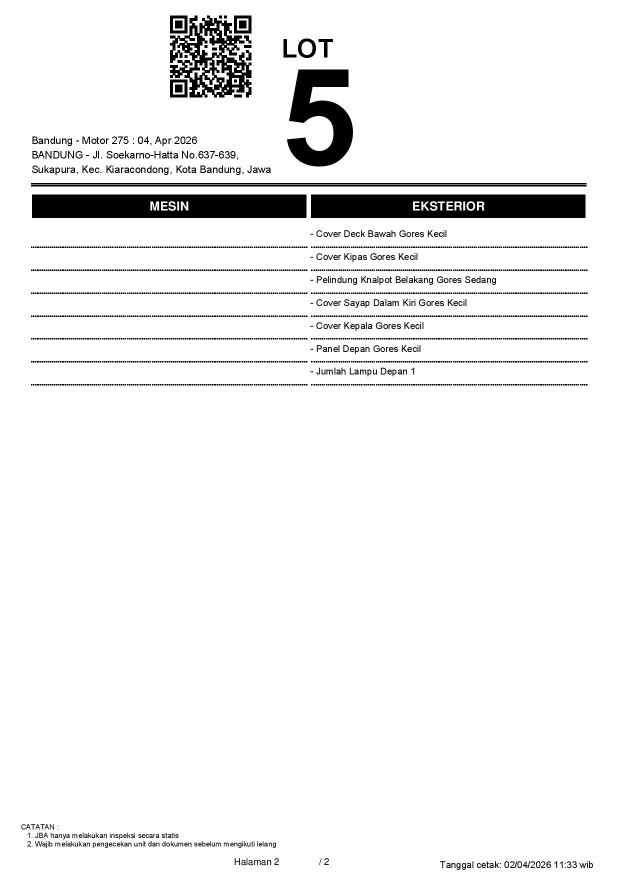 2. Peserta lelang wajib cek unit & dokumen