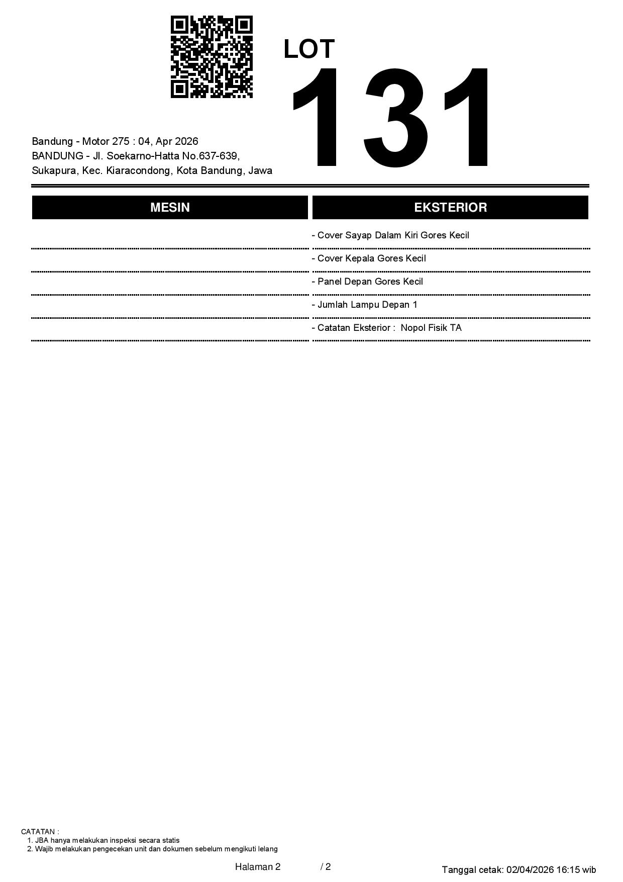 2. Peserta lelang wajib cek unit & dokumen