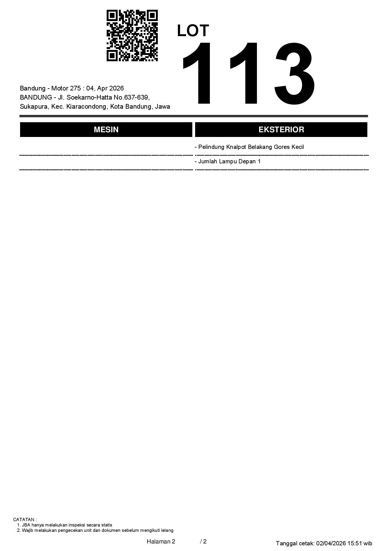2. Peserta lelang wajib cek unit & dokumen
