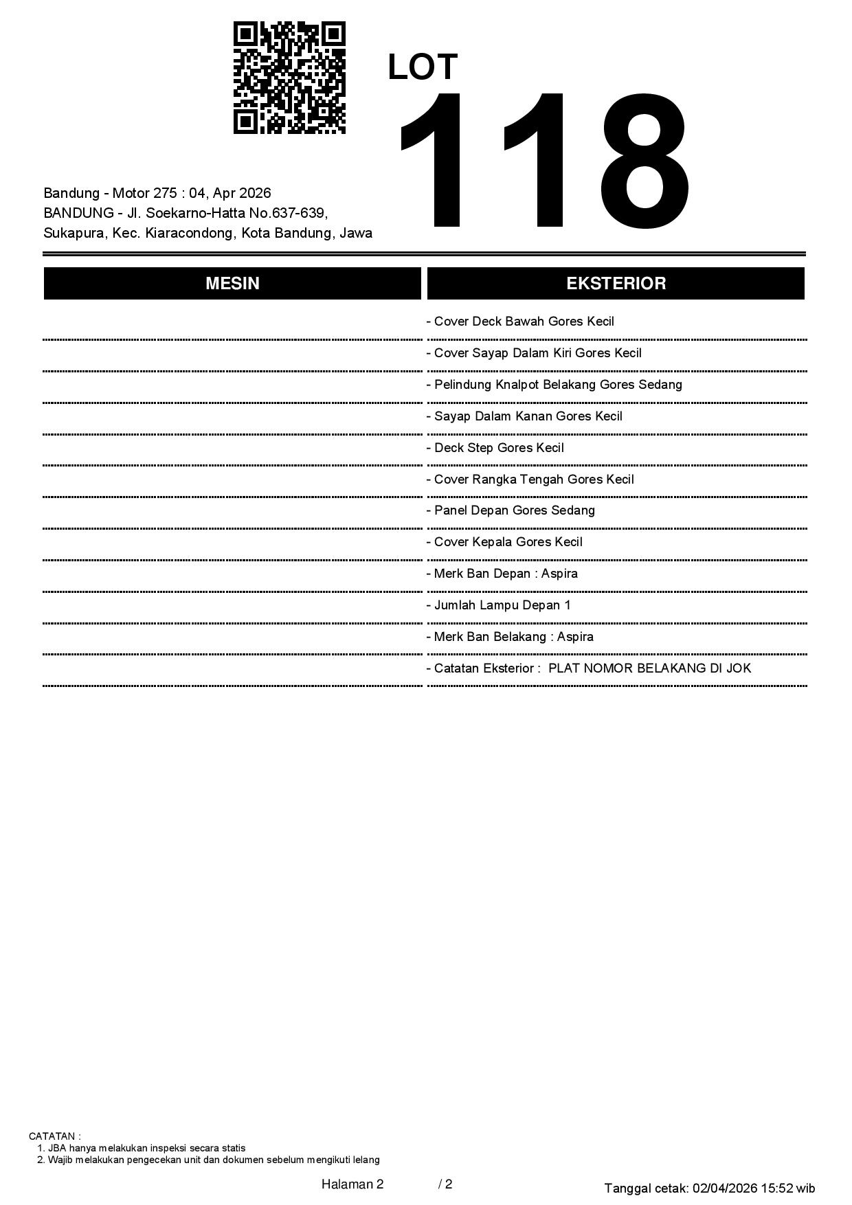 2. Peserta lelang wajib cek unit & dokumen