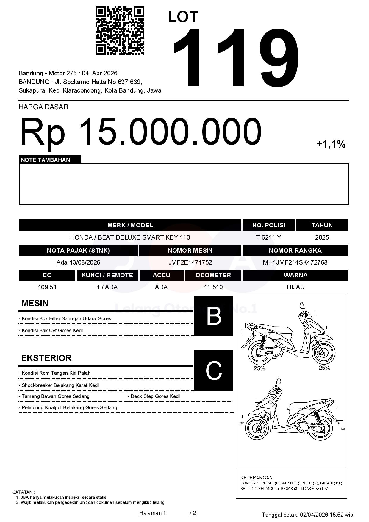 2. Peserta lelang wajib cek unit & dokumen