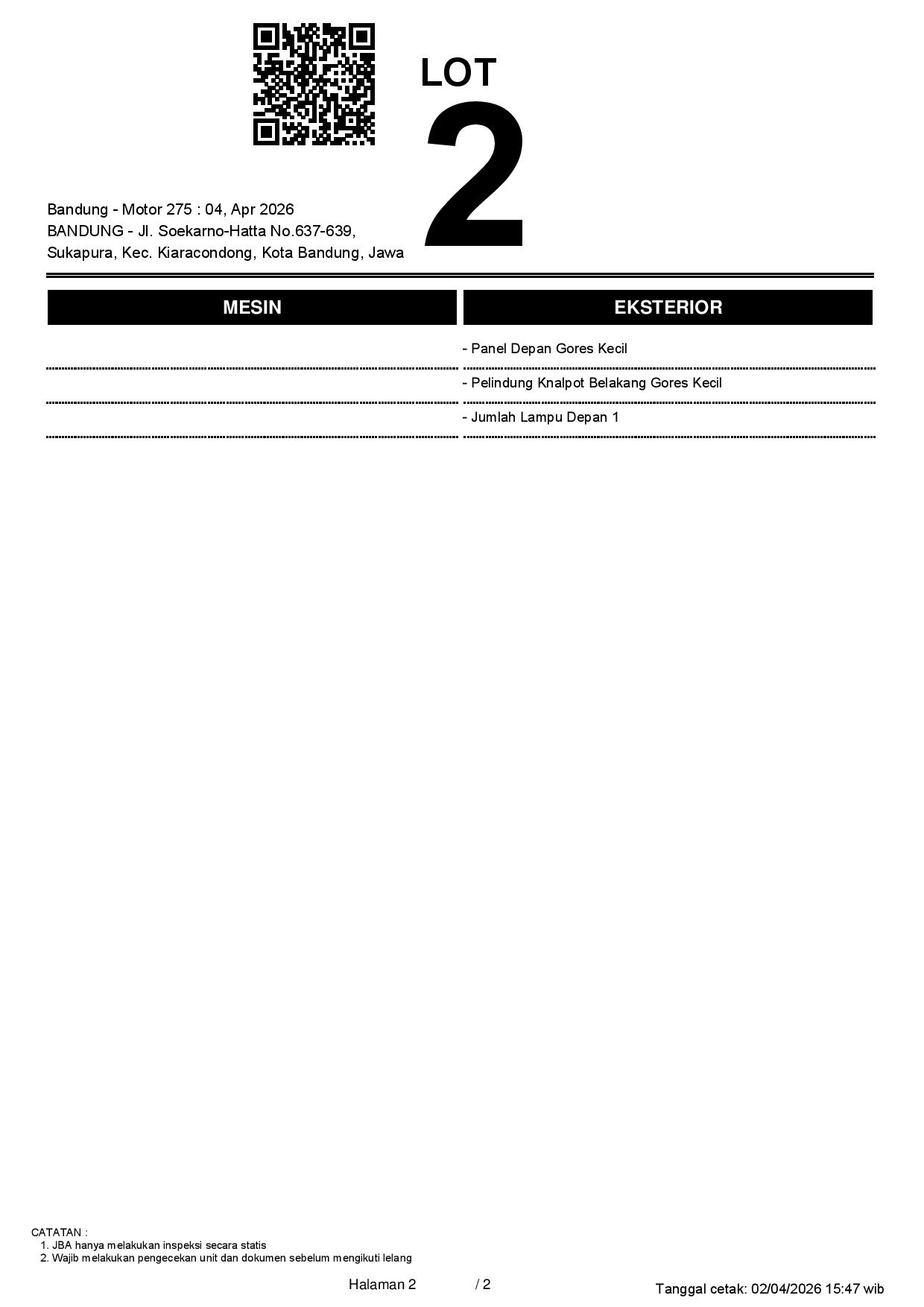 2. Peserta lelang wajib cek unit & dokumen
