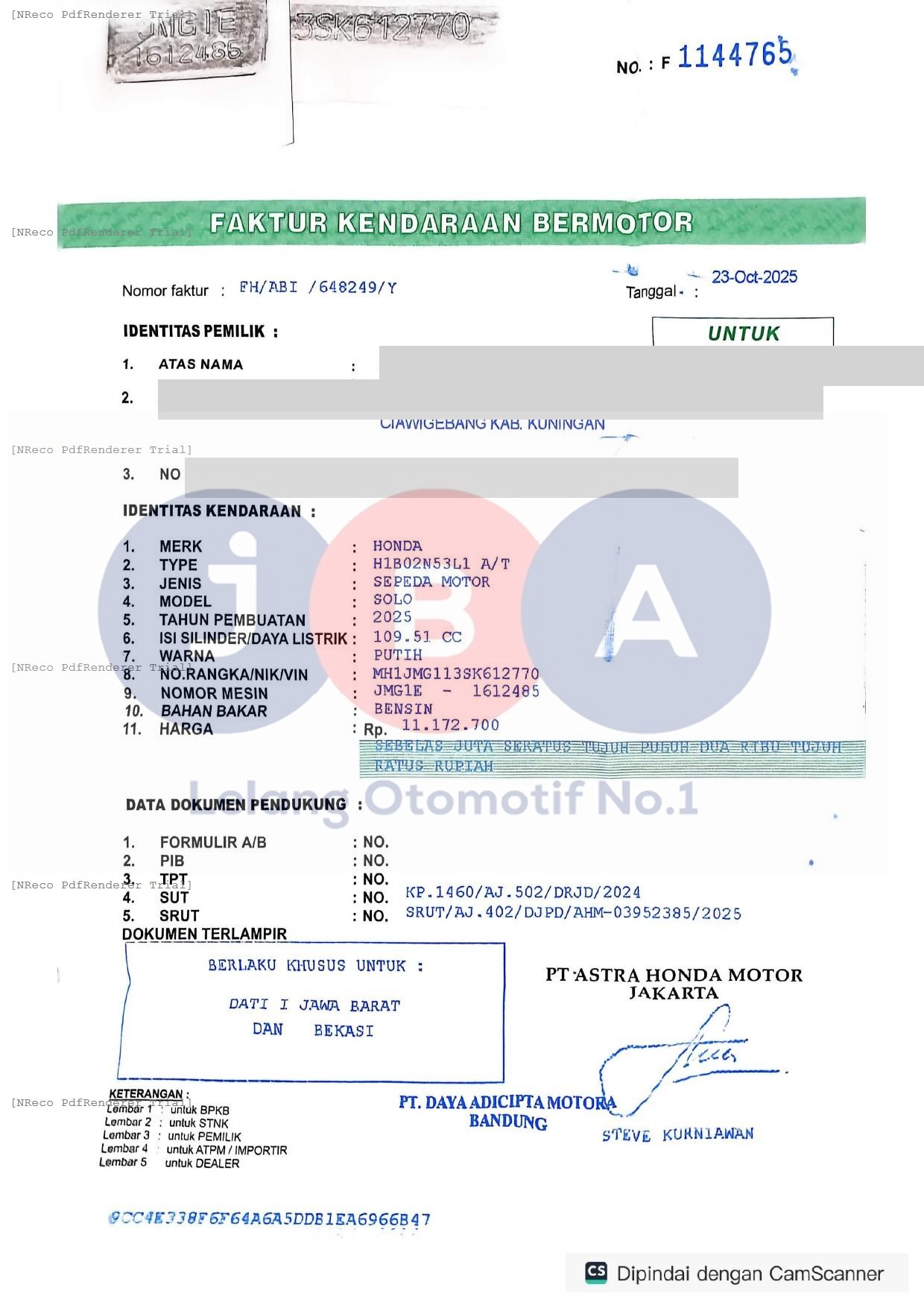 Nomor Rangka