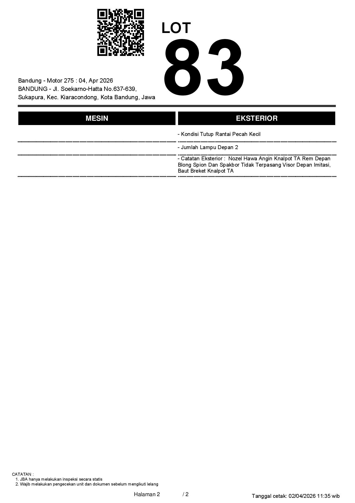 2. Peserta lelang wajib cek unit & dokumen