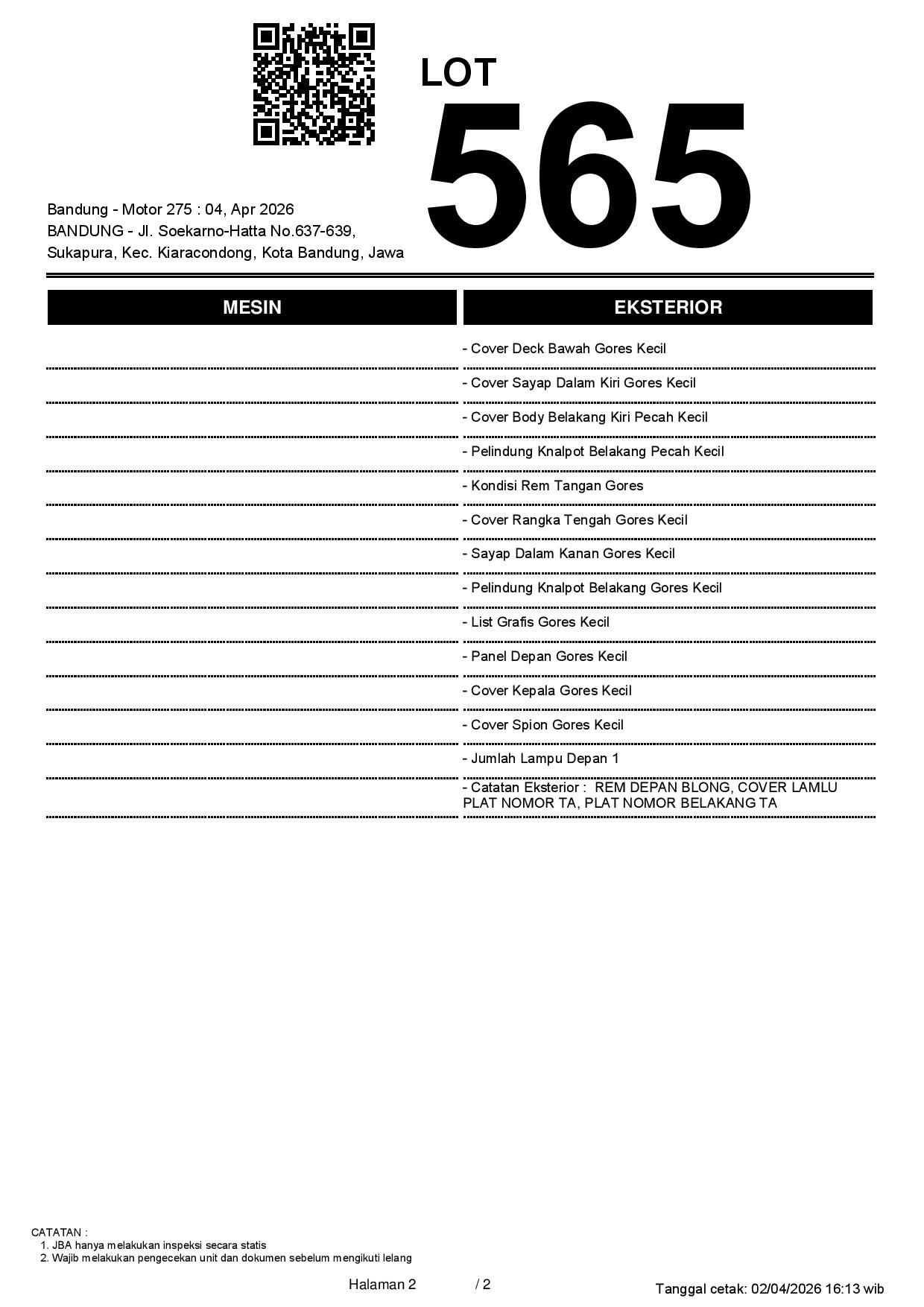 2. Peserta lelang wajib cek unit & dokumen