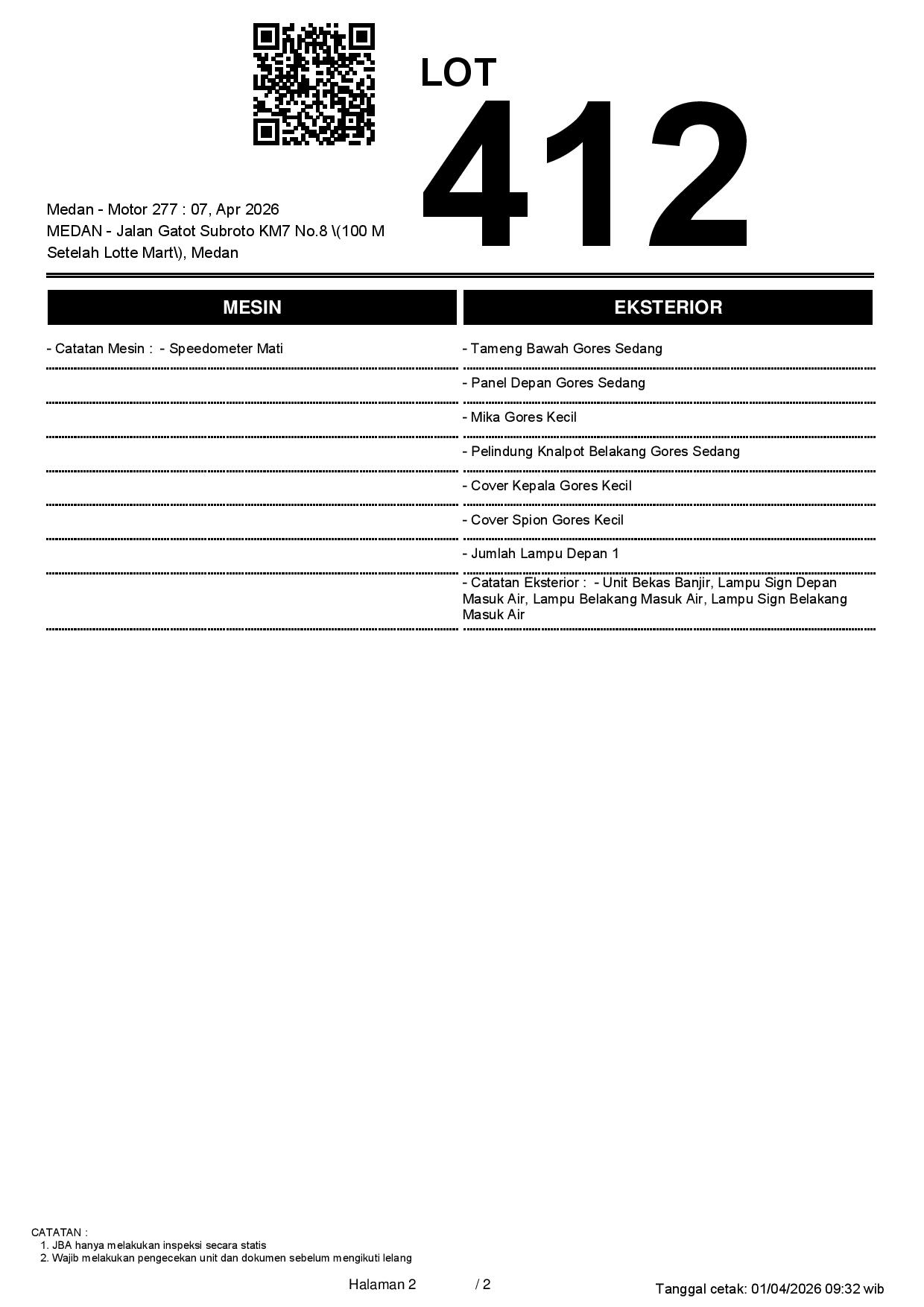 2. Peserta lelang wajib cek unit & dokumen